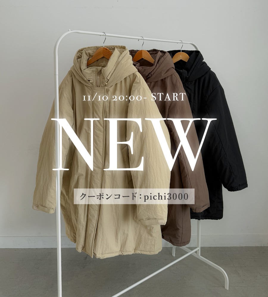 ※購入画面でクーポンコードをご入力ください。 ------------------------------- 2時間限定3,000円OFFクーポン 〈クーポンコード:pichi3000〉 11/10 20:00 - 21:59 ------------------------------- そのあとは! 2時間限定2,000円OFFクーポン 〈クーポンコード:pichi2000〉 11/10 22:00 - 23:59 ------------------------------- インパクトのあるビッグシルエットがトレンド感たっぷりなモンスターパーカー。 オーバーサイズシルエットなのに軽い着心地で包み込むような暖かさが魅力。 首元にはフードが内蔵されているので、好みで使い分けが出来るのも嬉しいポイント。 ももまですっぽりと隠れる長めのミドル丈がデイリー使いしやすく、厚すぎない中綿で中にもたっぷり着こめるから、防寒対策にもバッチリです! ■サイズ展開:FREE < 平置き実寸 (cm) >着丈前90 後97 身幅70 肩幅53 袖丈60 ネック高10 ※物により多少の誤差がある場合もございます事をご了承の上、ご購入をお願い致します。 ■重量:1.1 kg ■素材:(表地)ナイロン100% (裏地)ポリエステル100% (中綿)ポリエステル100% ■伸縮性:なし ■透け感:なし ■裏地:あり ■洗濯方法:クリーニング店をご利用ください。 ■ご確認ください■ 配送番号をご希望の場合は、備考欄に「配送番号希望」とご記載くださいませ。
