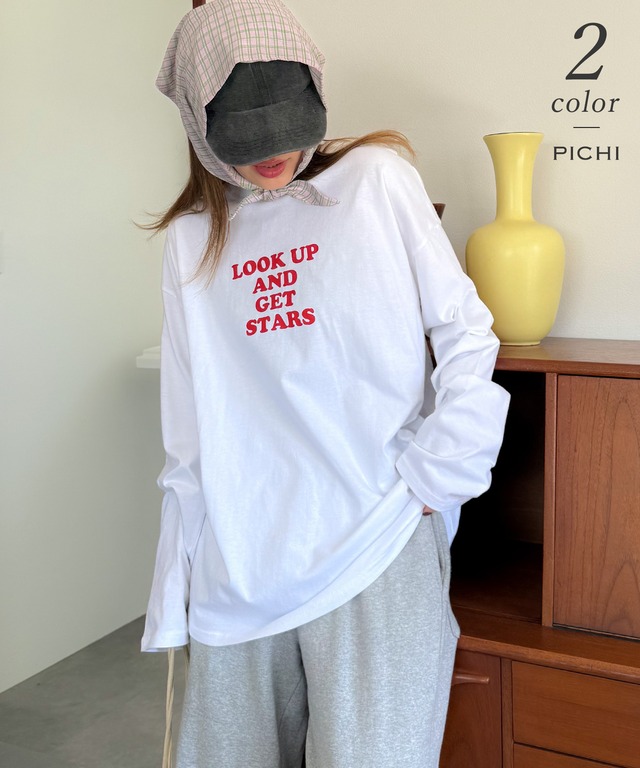 これまで多数のコラボアイテムを制作してきた インスタグラマーayanakamura_ と約2年半ぶりのコラボレーション企画! ロンTeeには“LOOK UP AND GET STARS”のメッセージ入り。 前向きで遊び心のあるフレーズが、シンプルなデザインのアクセントになっています。 1枚での着用はもちろん、ジャケットやシャツのインナーとしてもロングシーズン活躍。ゆったりとしたオーバーサイズシルエットで、デニムやスラックス、スカートまで幅広いスタイリングにマッチ。 ayanakamura_のこだわりが詰まった、特別なコラボレーションロンTをぜひお楽しみください。 ■身長:ayanakamura_157cm / モデル 160cm ■素材:綿100% ■サイズ展開:FREE <平置き実寸(cm)>着丈70 身幅58 肩幅58 袖丈58 ※物により多少の誤差がある場合もございます事をご了承の上、ご購入をお願い致します。 ■伸縮性:あり ■透け感:あり ■裏地:なし ■お手入れ:手洗い可 ■ご確認ください■ 配送番号をご希望の場合は、備考欄に「配送番号希望」とご記載くださいませ。