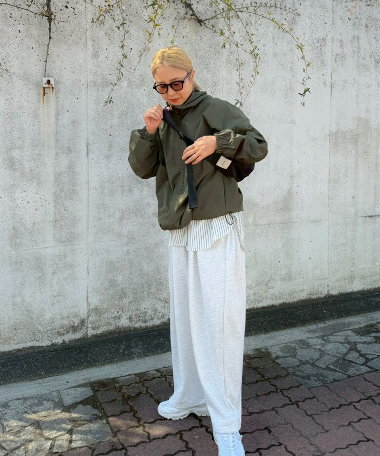 シャカシャカとした滑らかな肌触りで柔らかく、高級感溢れるマットな素材を採用。裾はドロスト仕様でシルエットの変化を楽しめます。