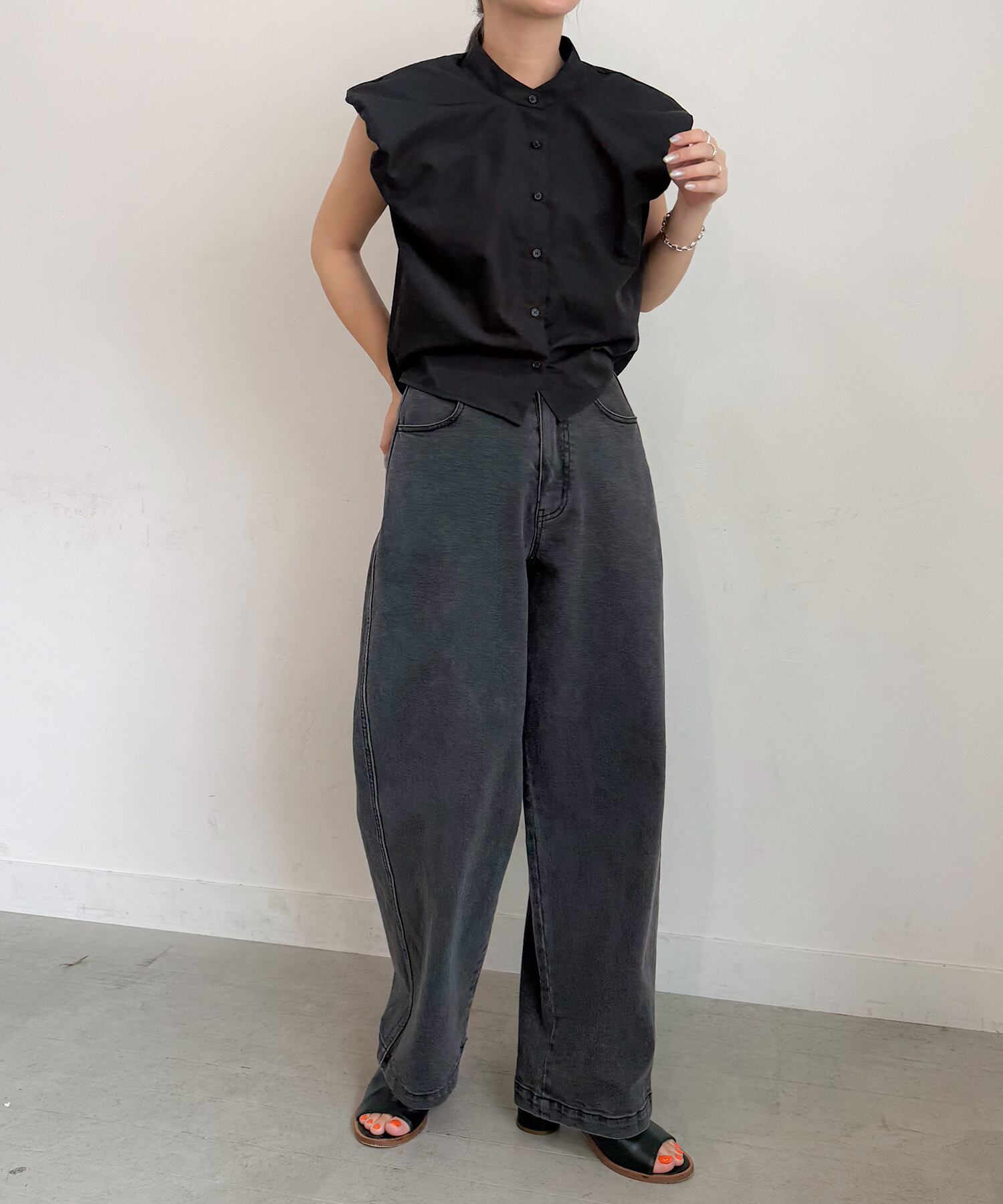 インせず着てもシルエットが決まるので、ワイドパンツやデニムと合わせるだけで、こなれ感たっぷりの着こなしが完成します◎