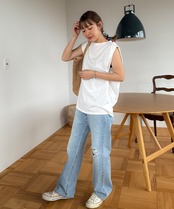 デニムやスラックスパンツと合わせてゆるっとラフな着こなしに。