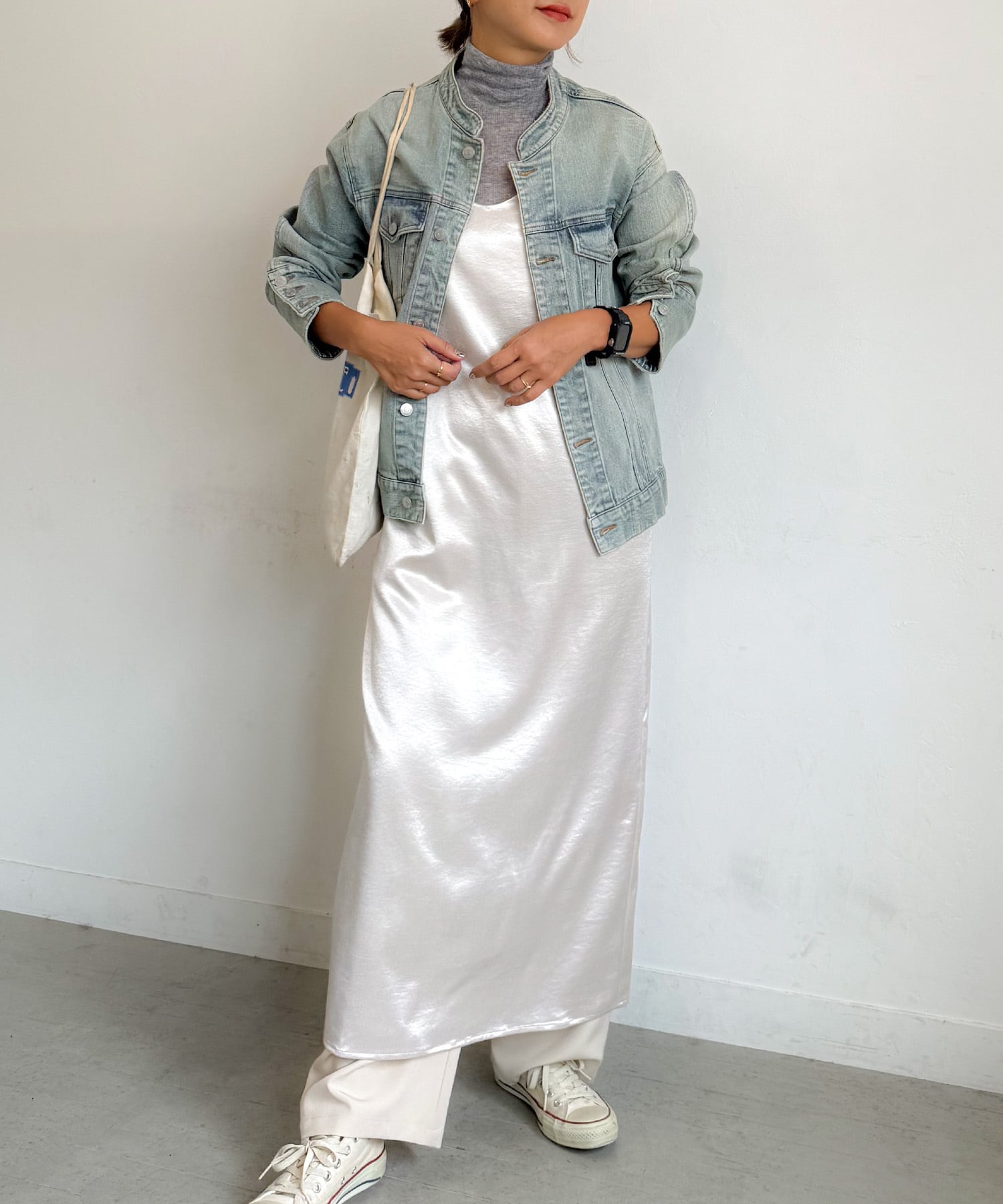 シンプルに一枚でさらっと着こなすのはもちろん、カットソーやシアーハイネックなどレイヤードを楽しんで。