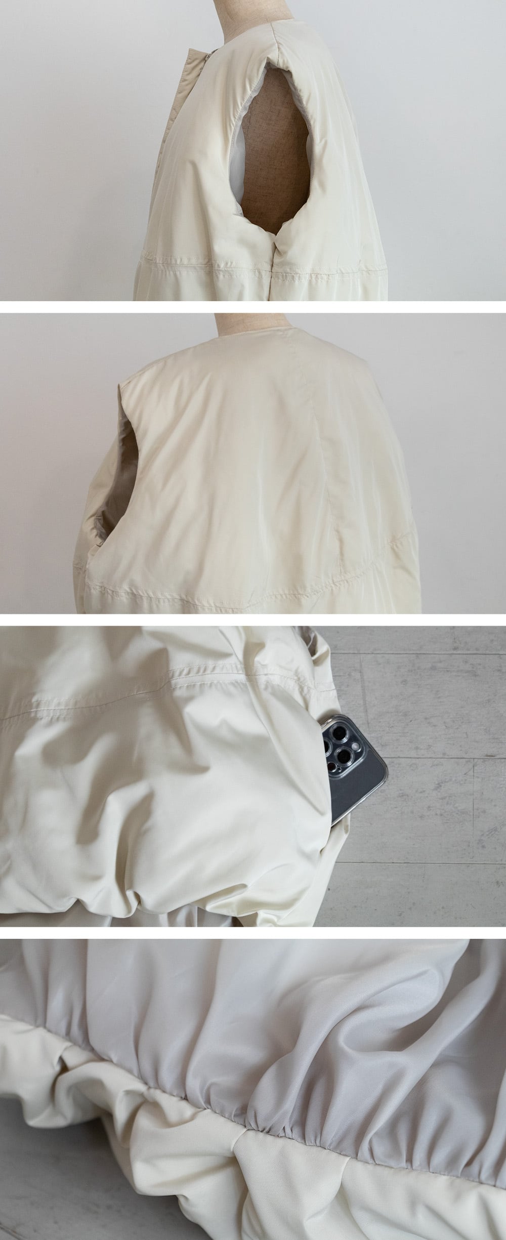 ボリュームたっぷり、ころんと丸みのあるシルエットで、重ねるだけで旬なレイヤードスタイルが完成します。上下から開閉できるダブルジップ仕様で、着こなしや気分に合わせてアレンジ可能。軽い着心地ながら暖かく保温性に優れたフェイクダウンで、両サイドには便利なポケット付き。