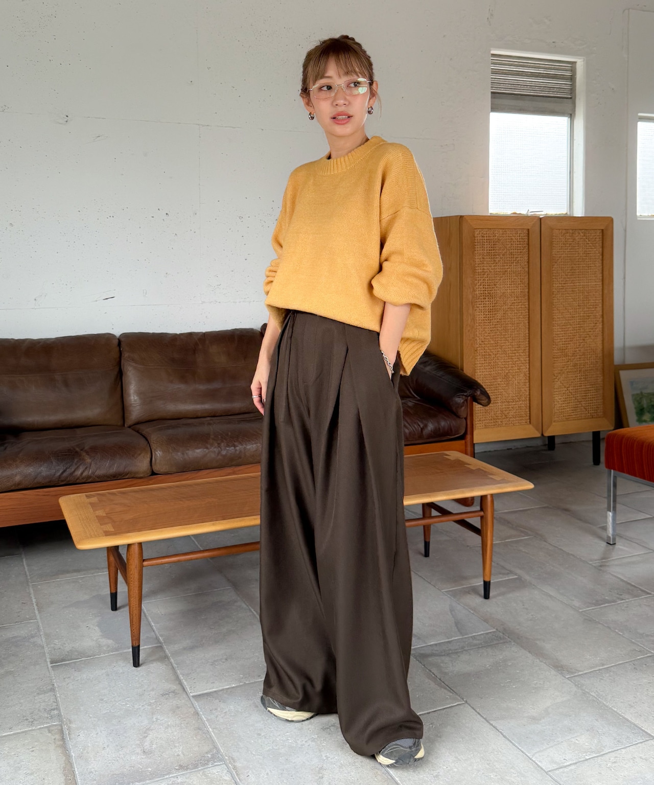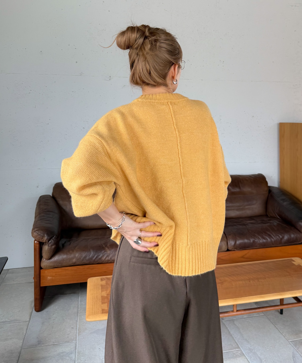 ふんわりと柔らかな風合いが心地よいショート丈ニット。