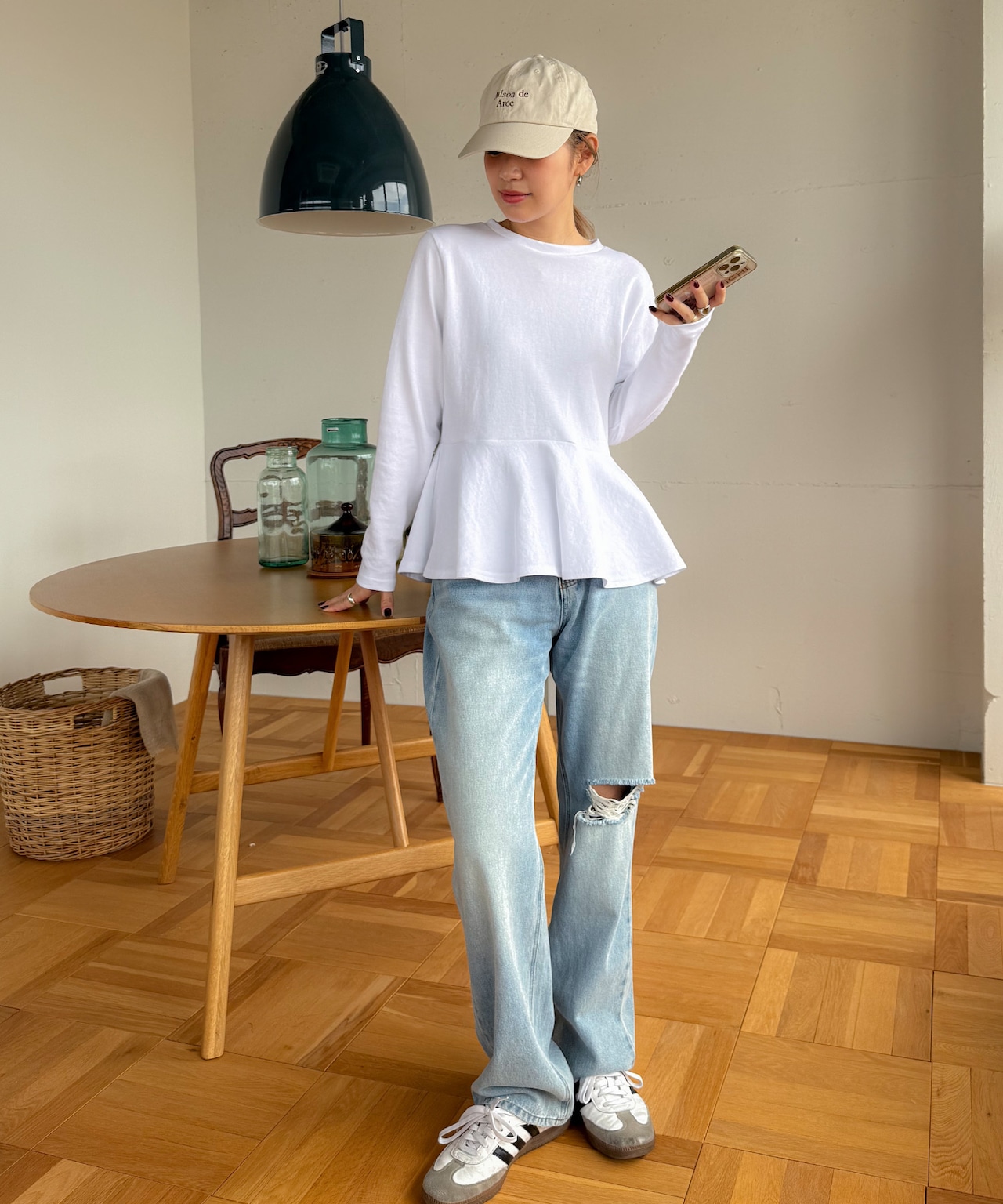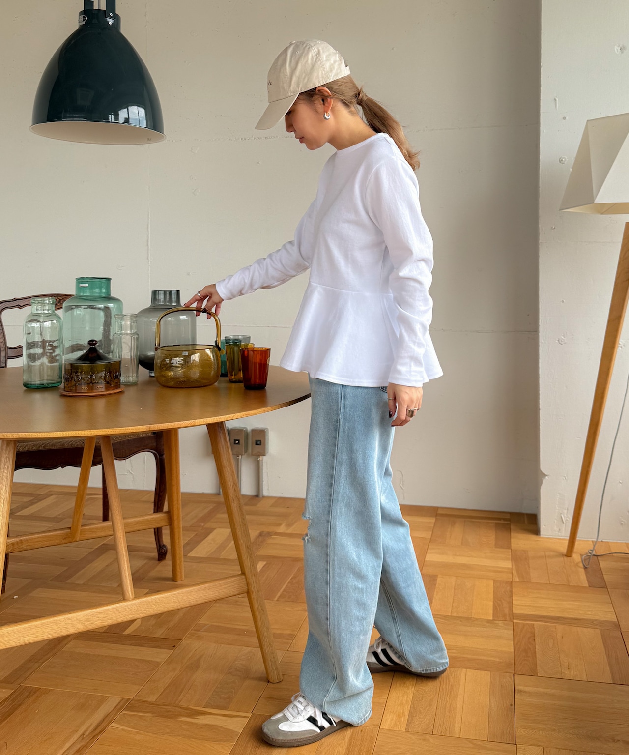 デニムと合わせてカジュアルに、スニーカーをプラスすればデイリーコーデに◎