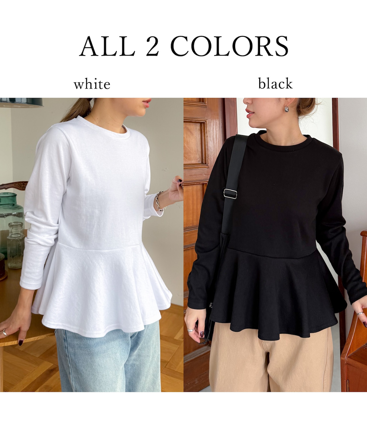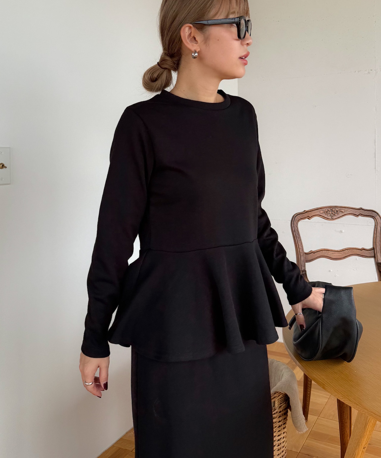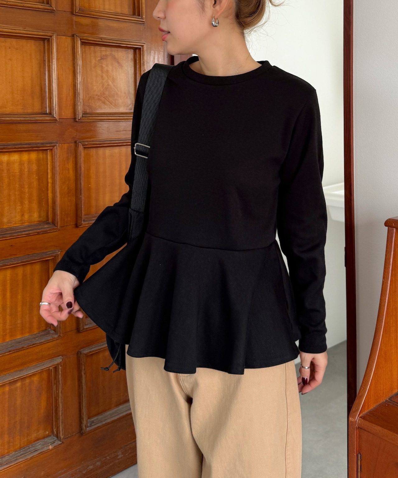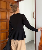 しっかりとした生地感で、デイリーに使いやすい切り換えペプラムトップス。