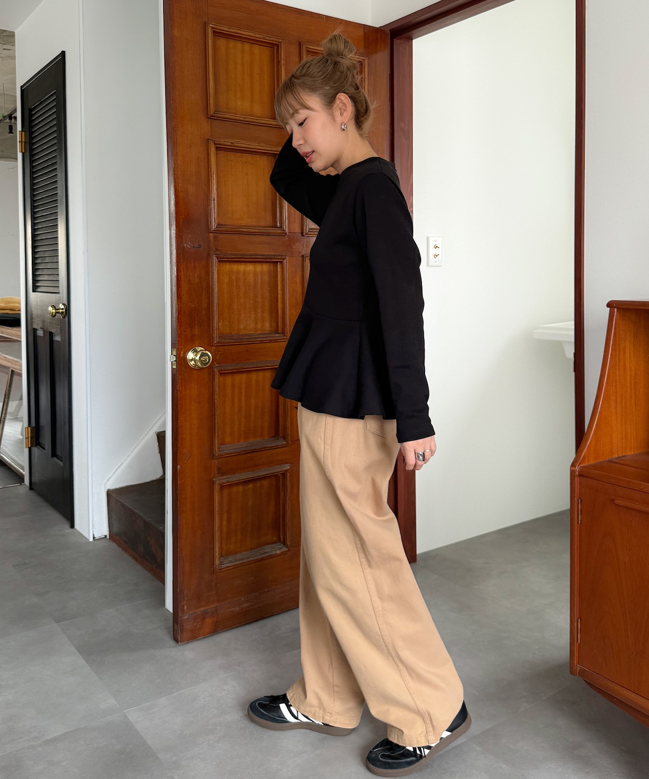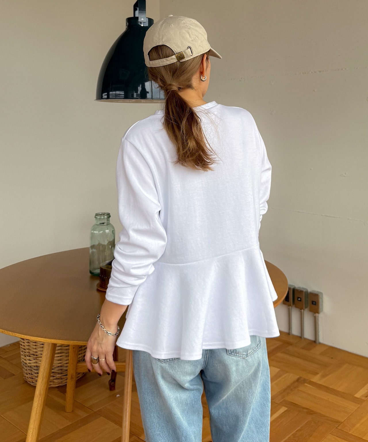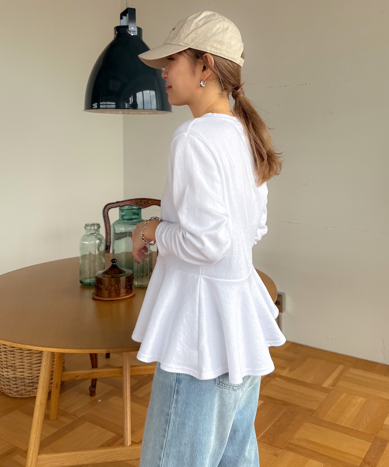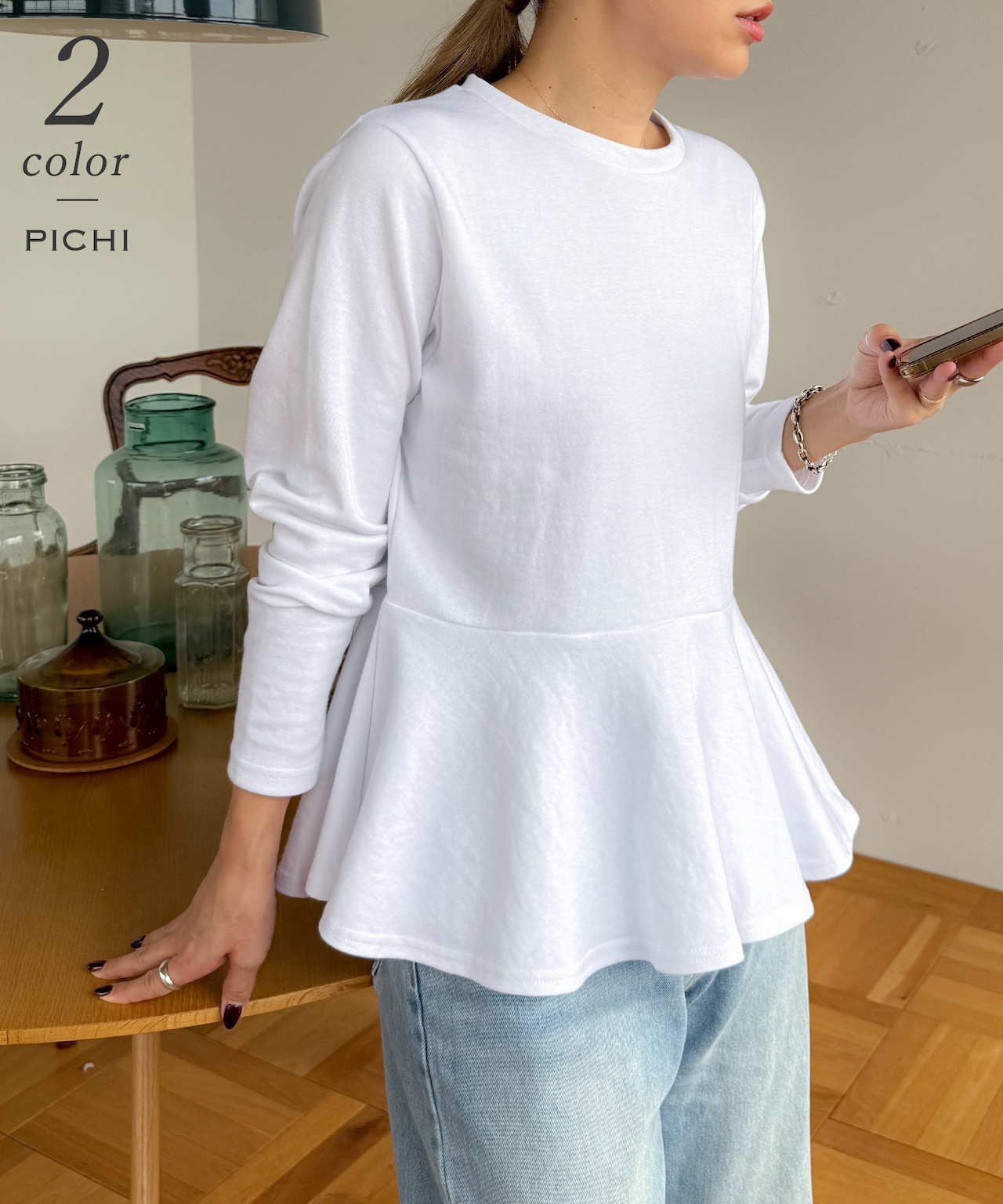 しっかりとした生地感で、デイリーに使いやすい切り換えペプラムトップス。