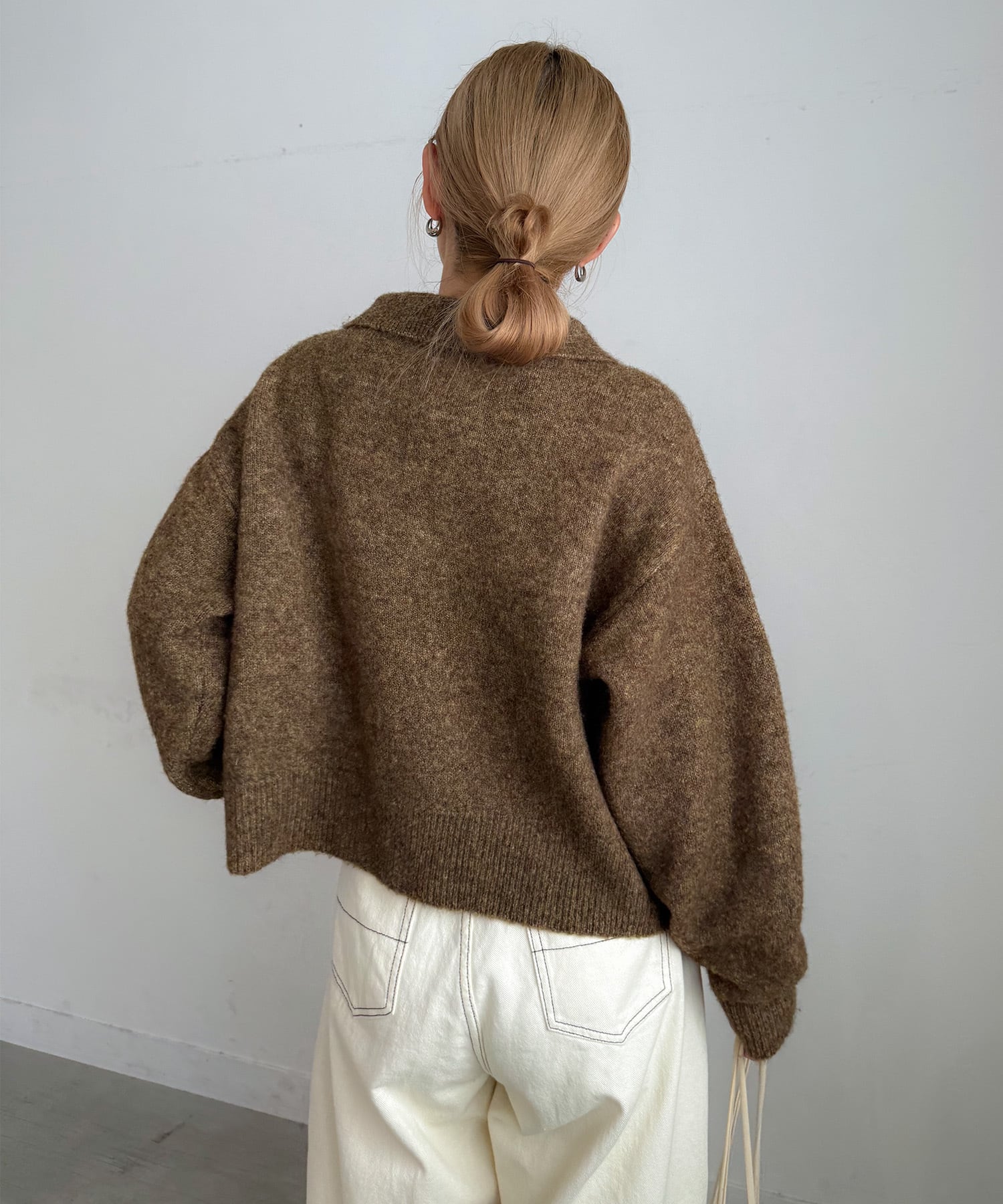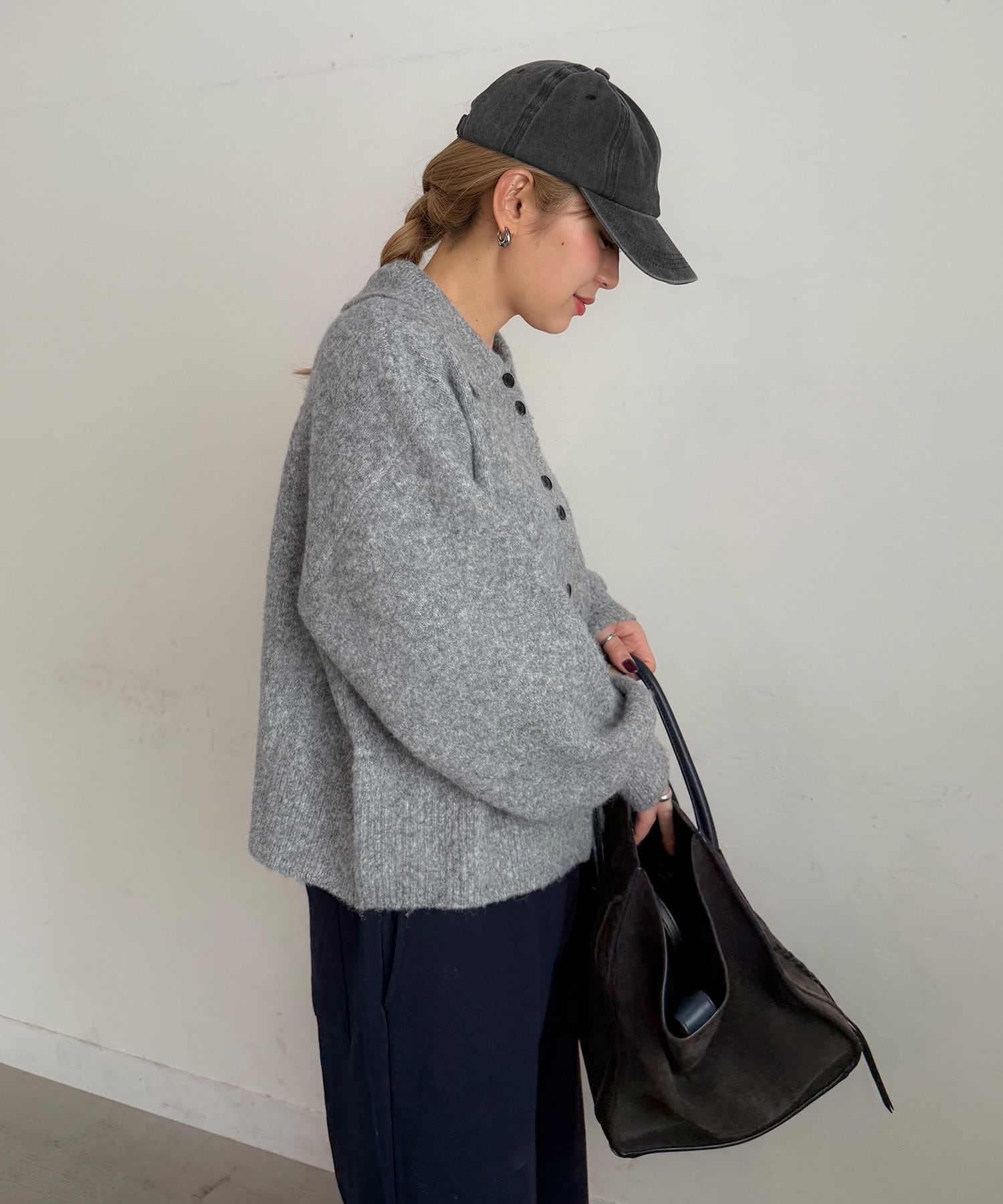 襟付きのデザインが目を惹く、抜け感たっぷりのニットカーディガン。