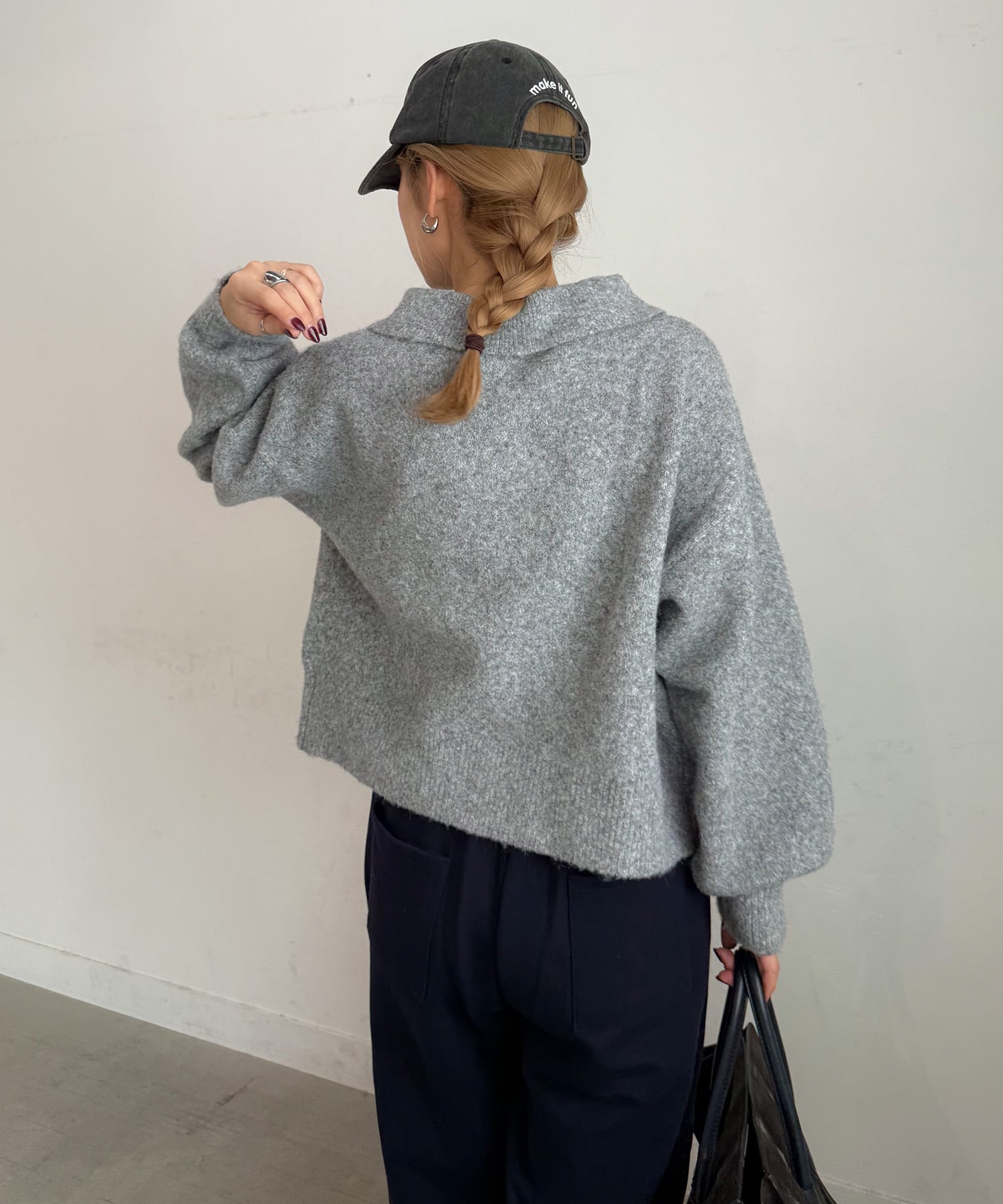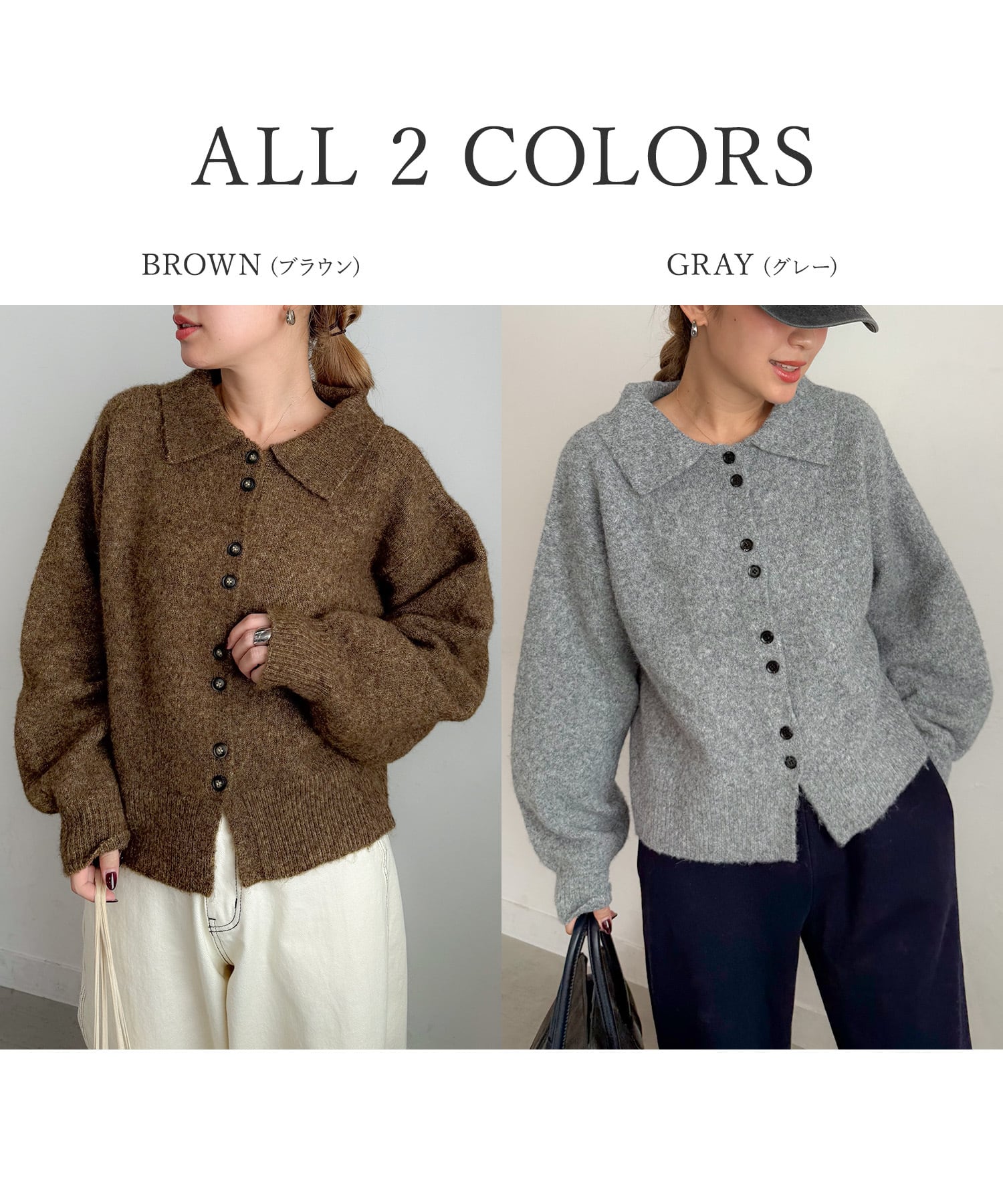 フロントボタンの配置デザインが、シンプルながらもお洒落感をプラスしてくれます。ぽわんとしたシルエットの袖が女性らしい柔らかさを演出し、程よいゆとりでリラクシーな着心地に。柔らかい風合いのMIXニット素材で仕立てられており、見た目も着心地もふんわり。羽織りとしてはもちろん、ボタンを閉めてプルオーバー風に着こなすのもおすすめです。