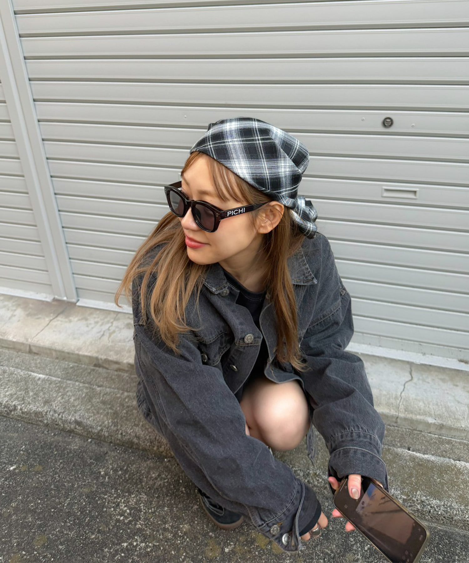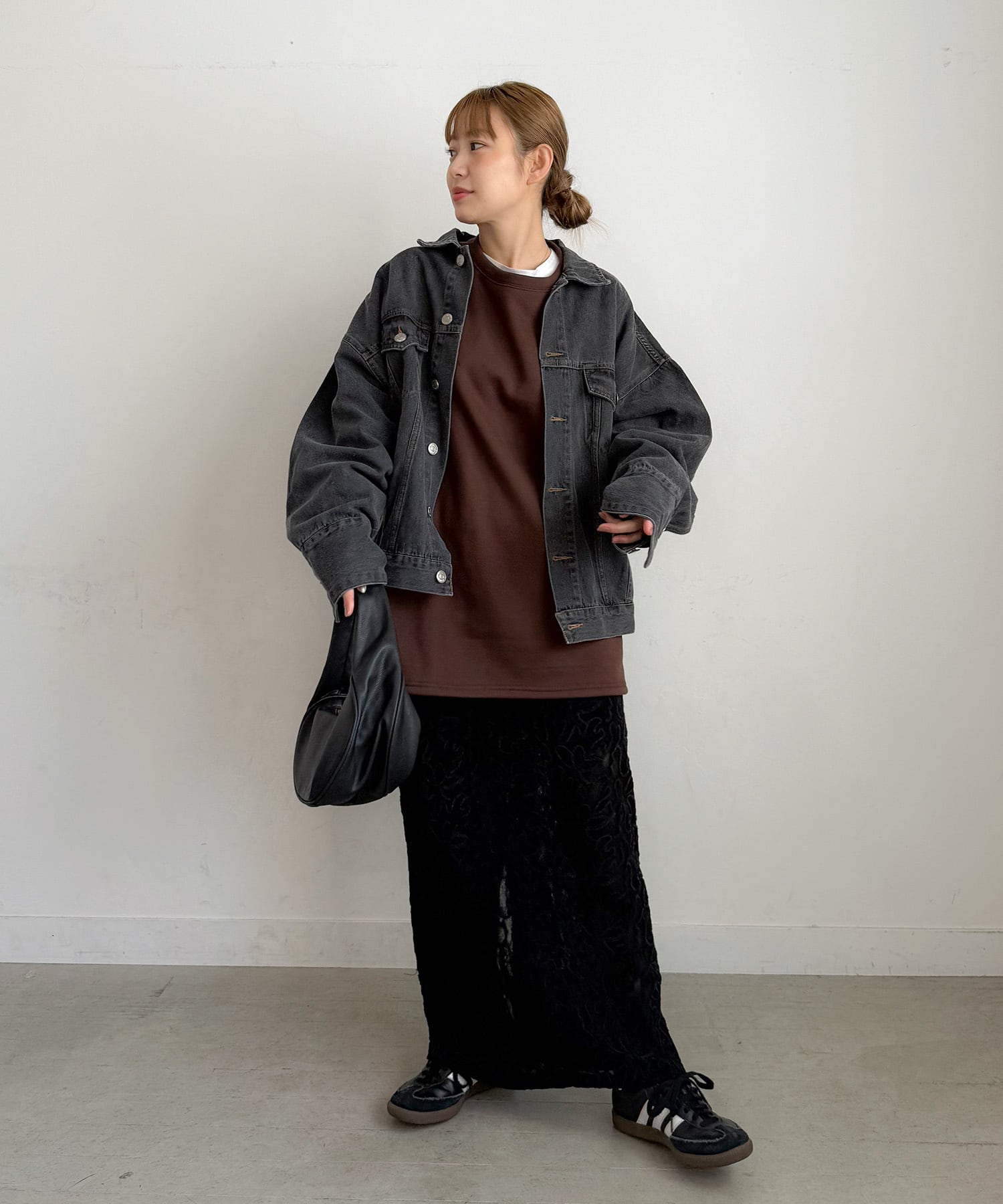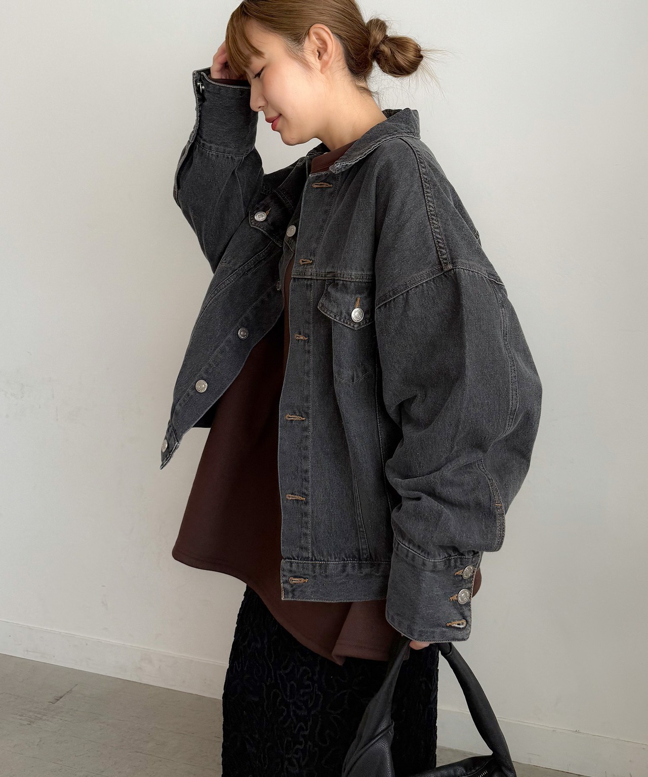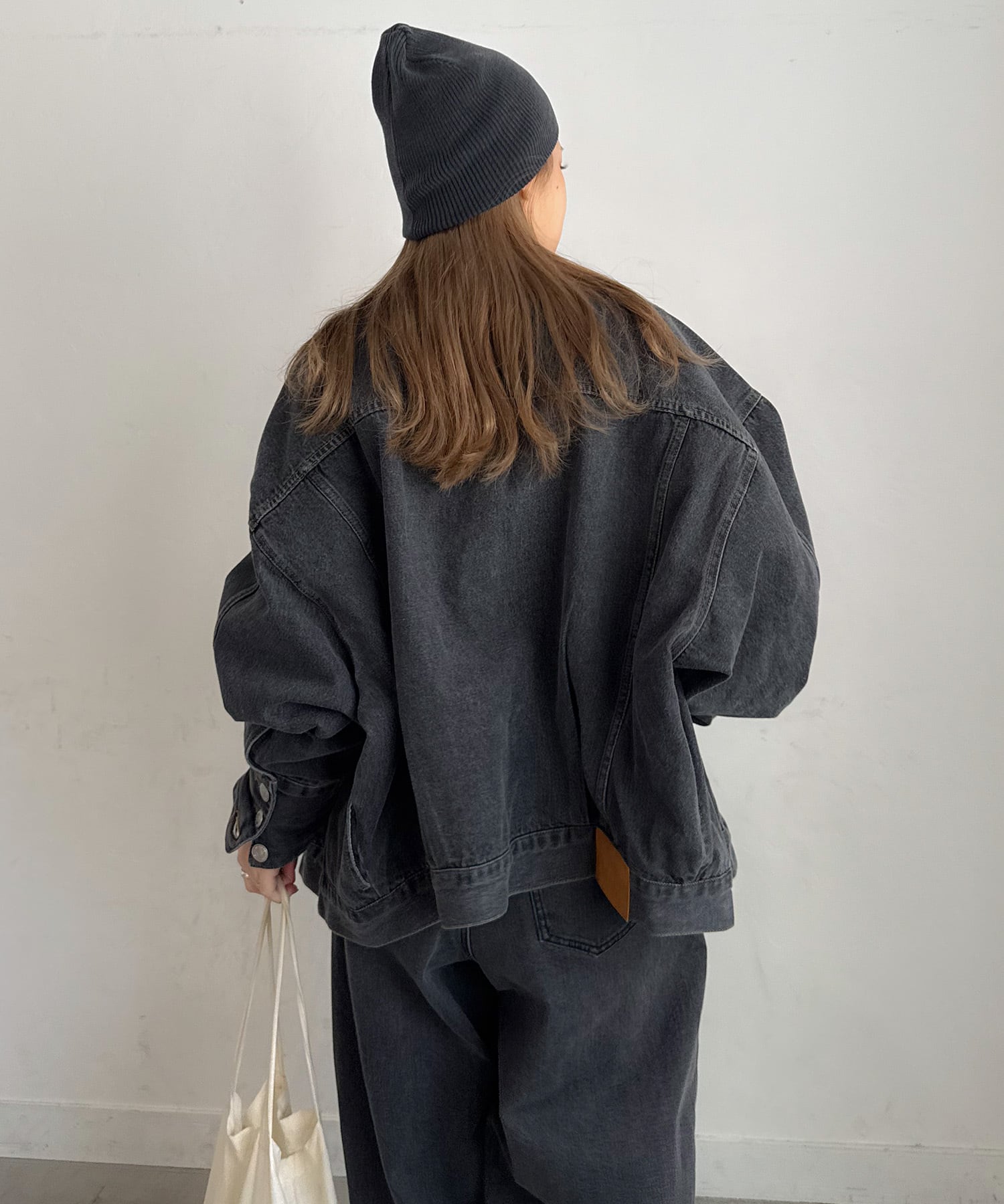 ブラックは、PICHIで展開しているカーブデニムとセットアップで着用できます。