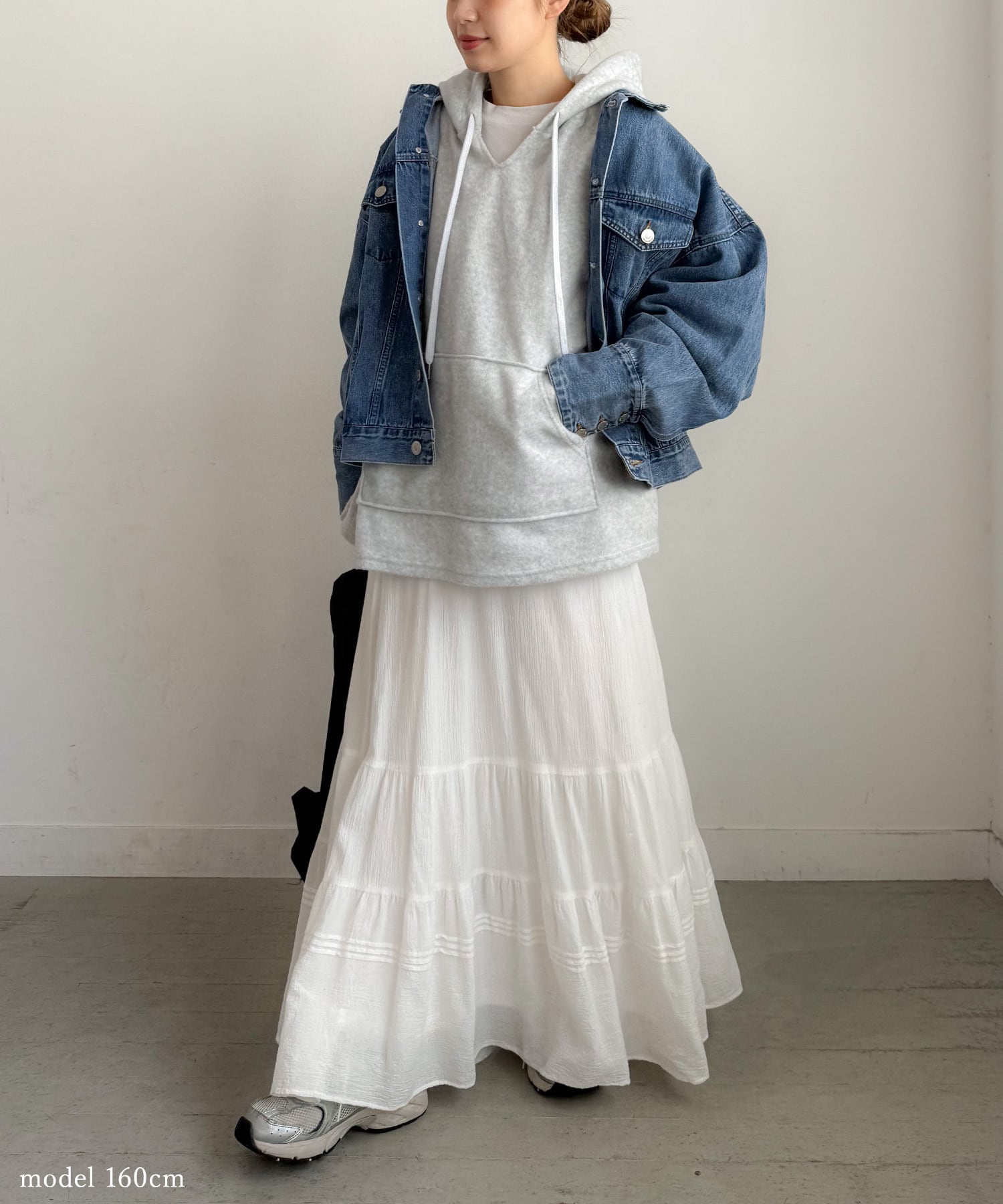 ロングスカートやワンピースと合わせれば、甘さを程よく抑えたカジュアルMIXも楽しめます。