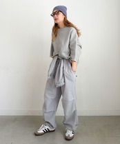 スニーカー合わせでカジュアルに、デニムジャケットやキャップをプラスしたメンズライクなスタイリングもおすすめ。