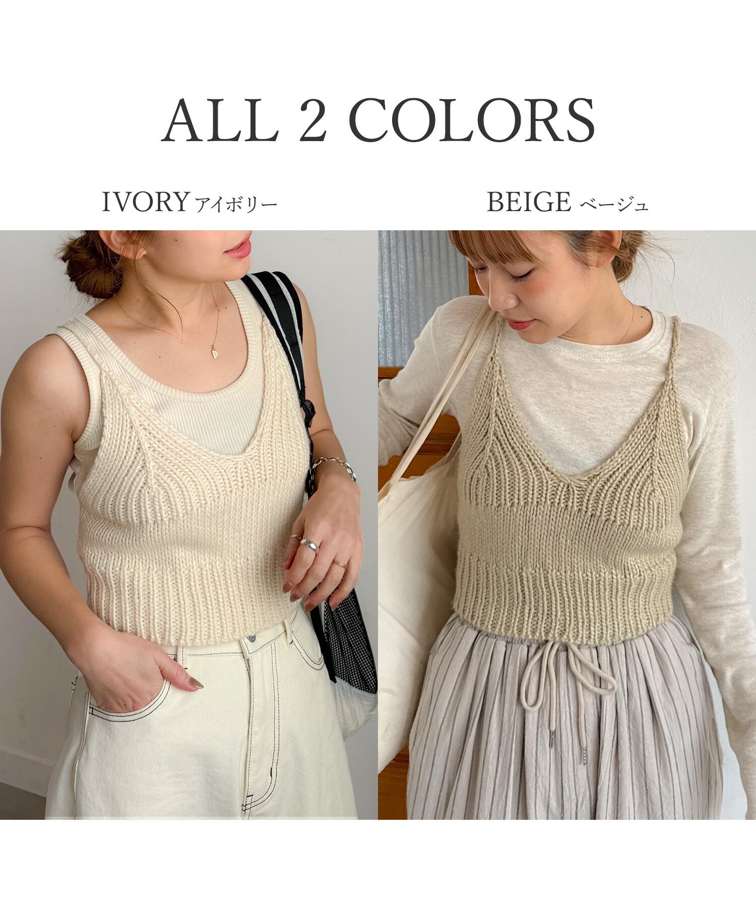 ハンドニットならではの温かみのある編み柄デザインのニットビスチェ。