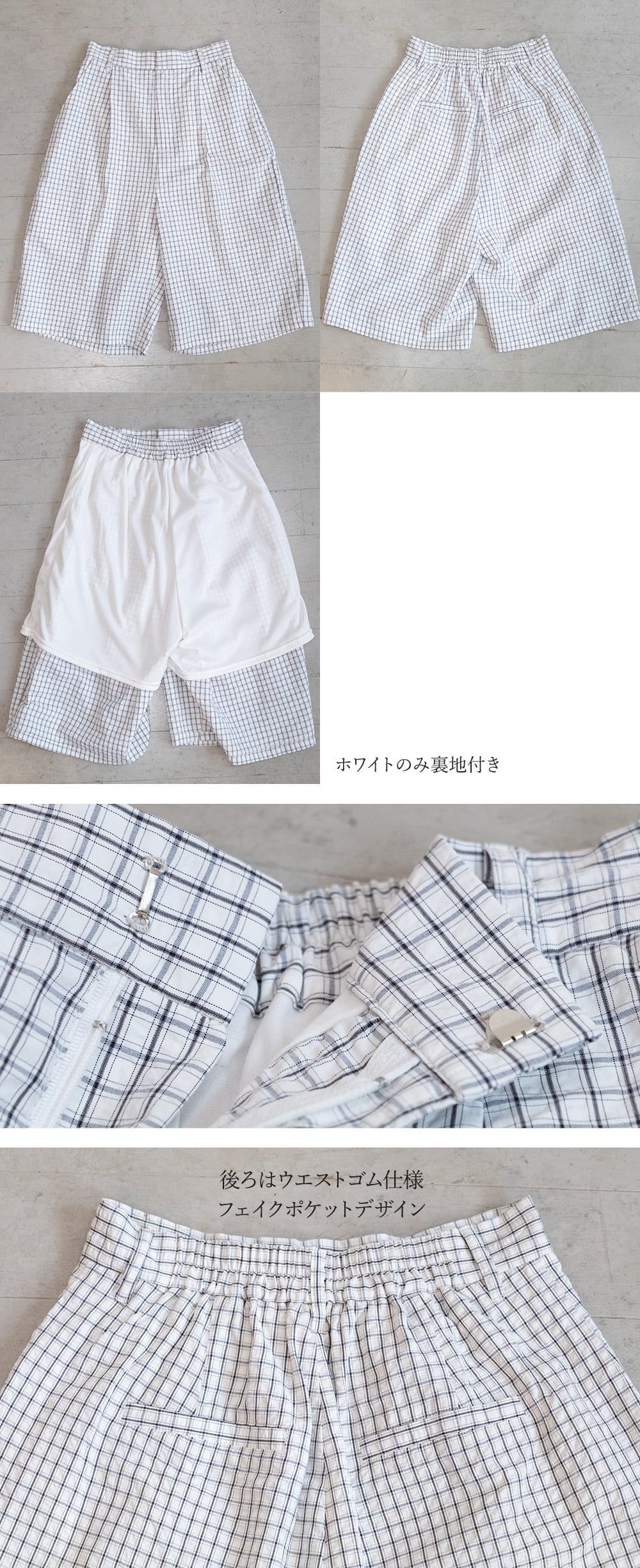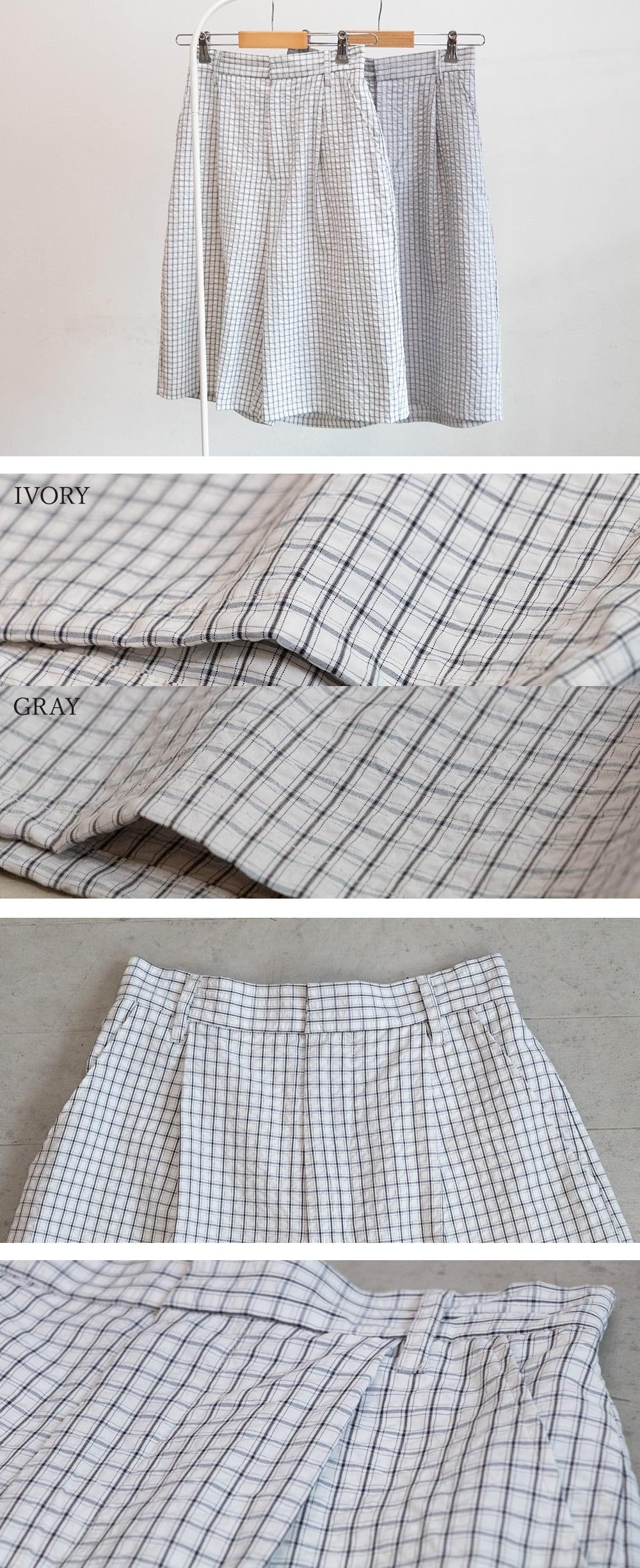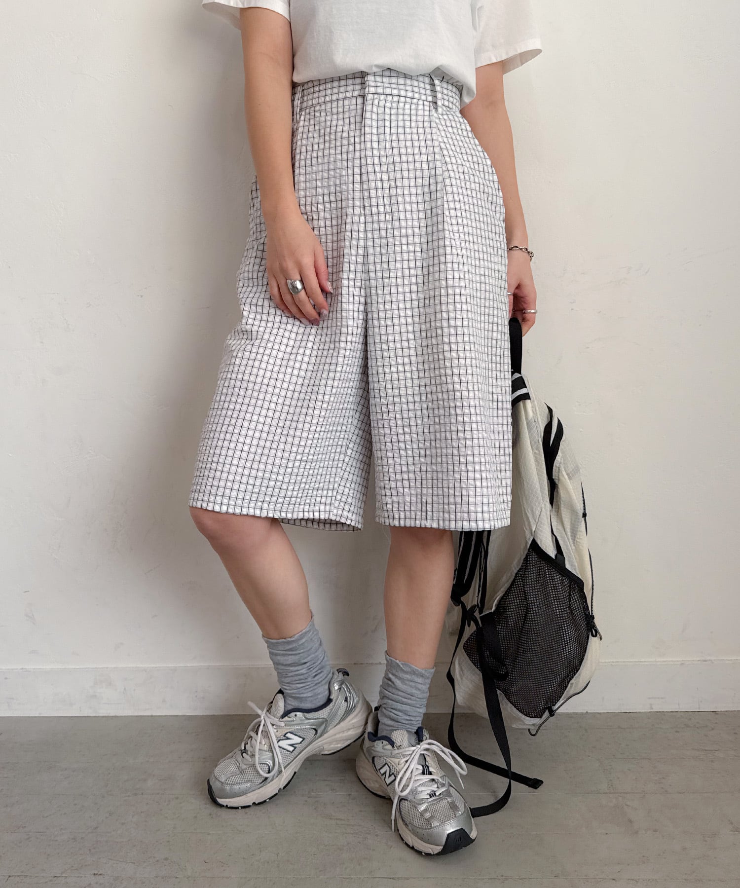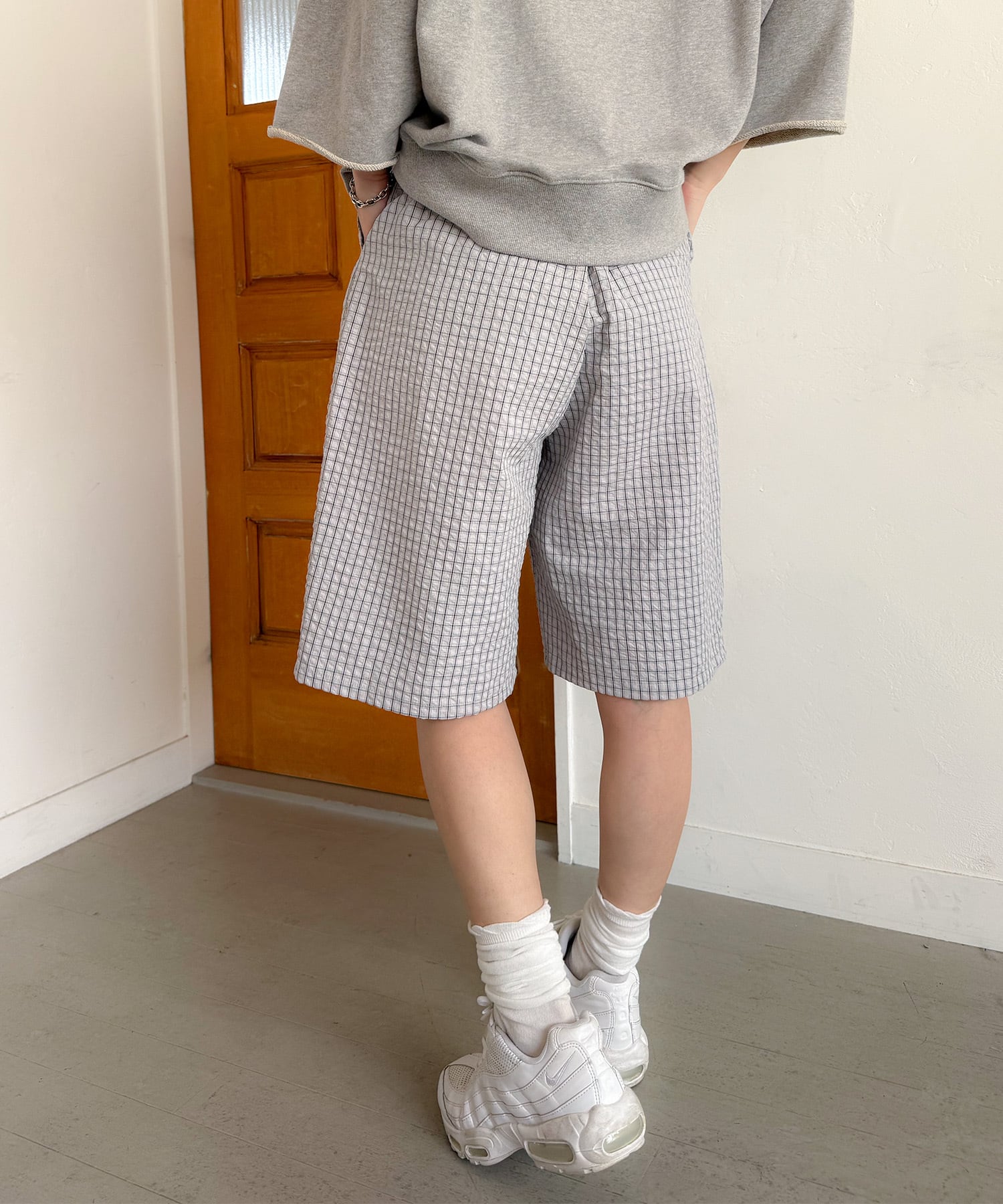 凹凸感のあるサッカー生地で仕立てた、軽やかなチェック柄ハーフパンツ。