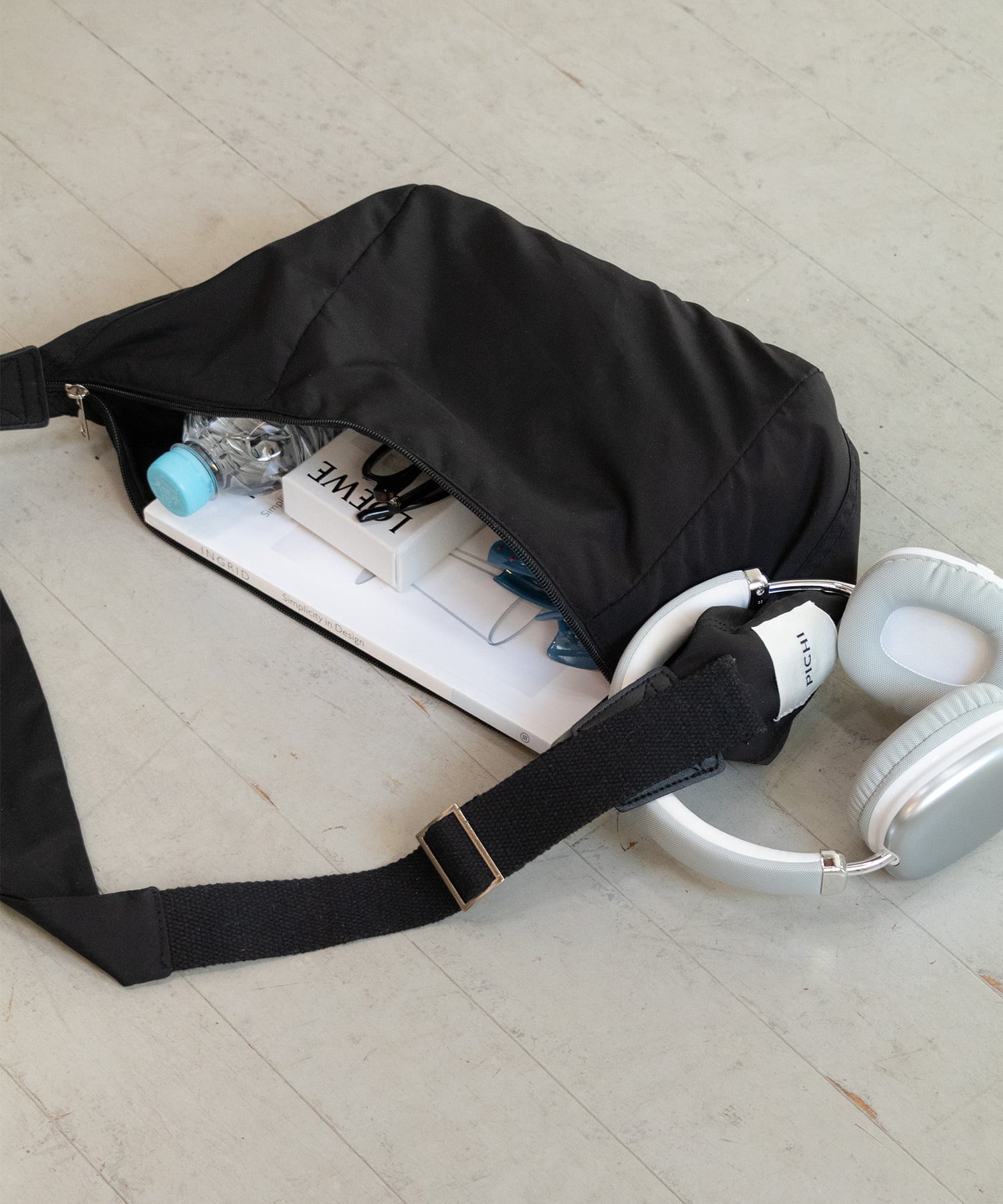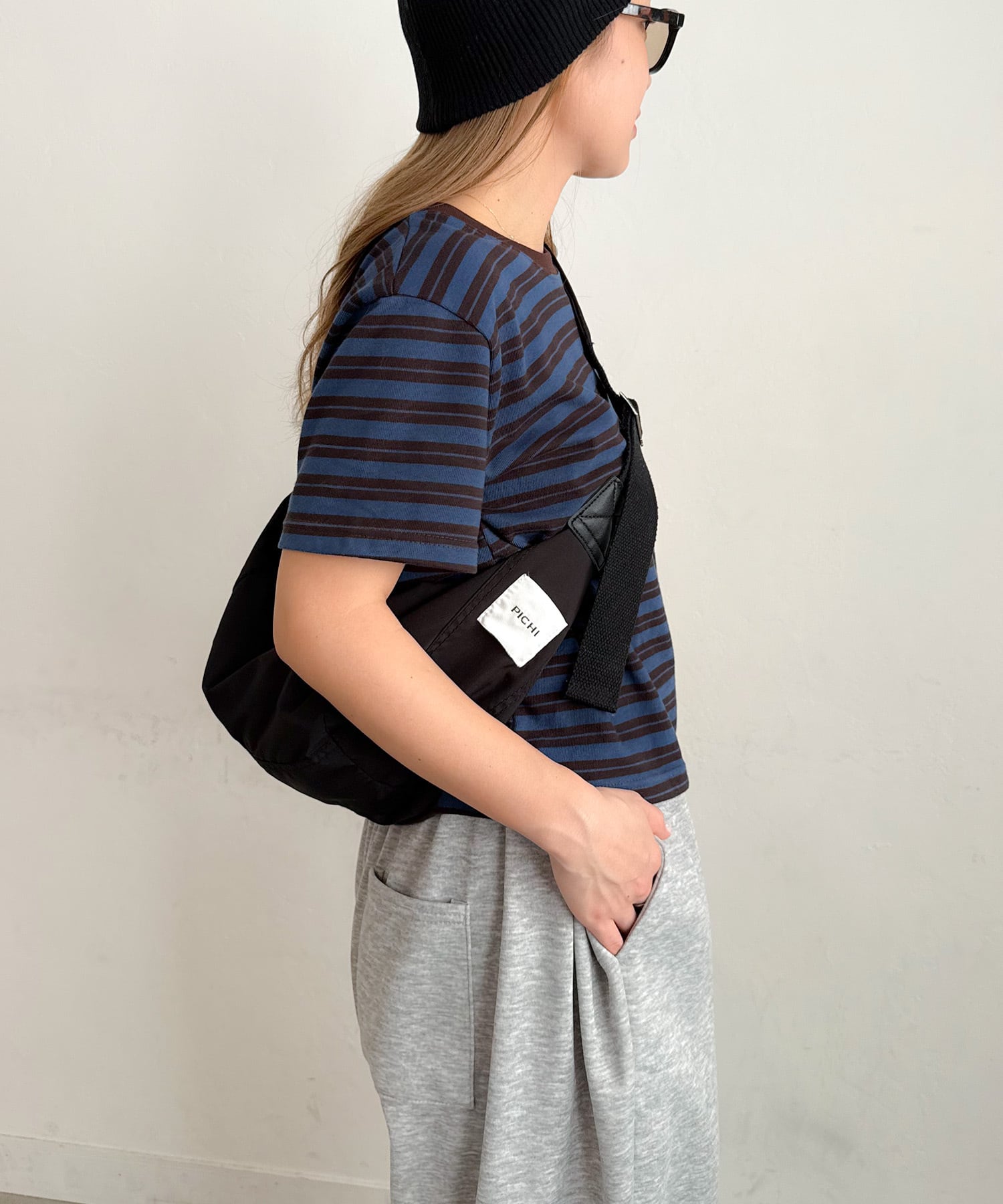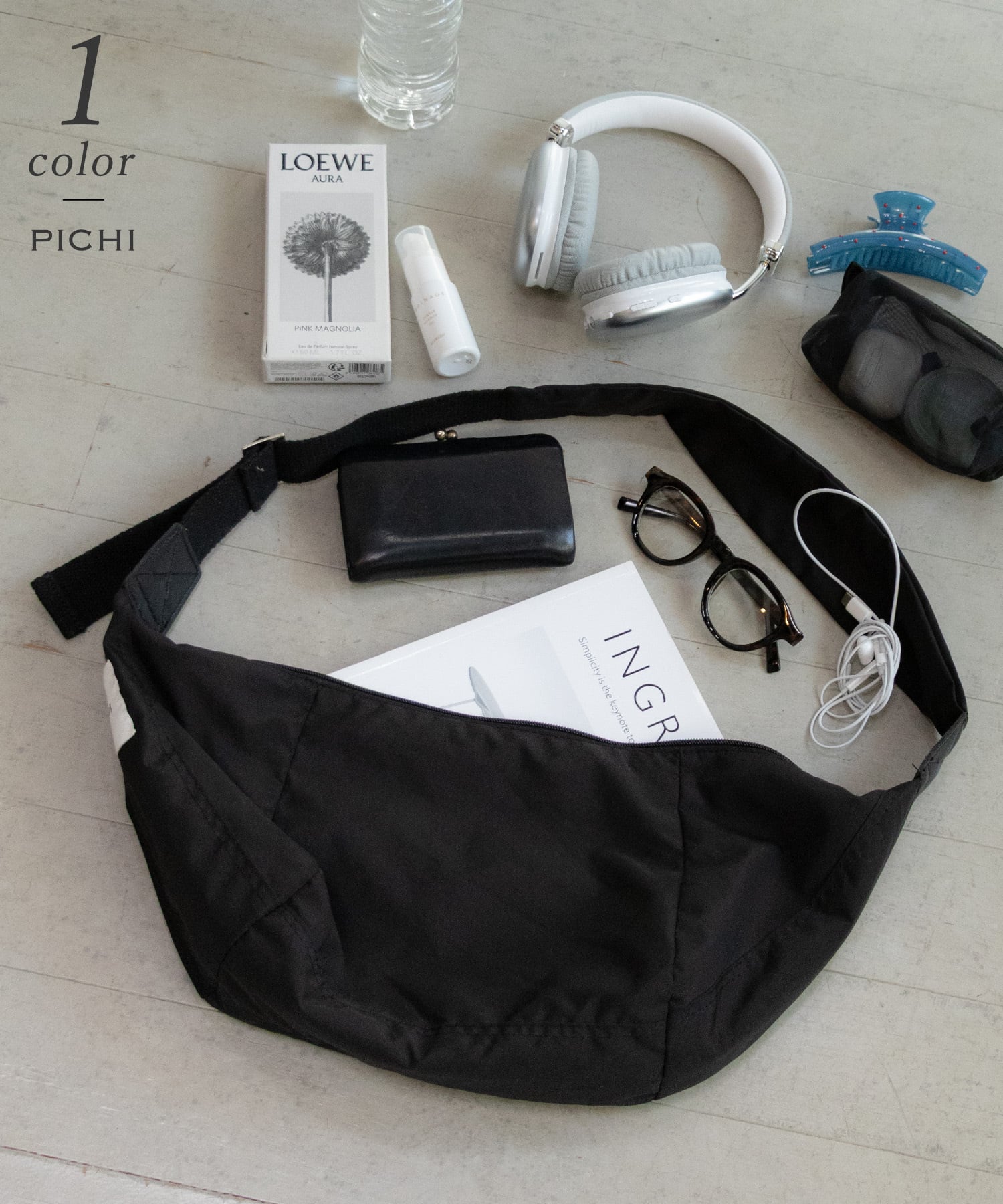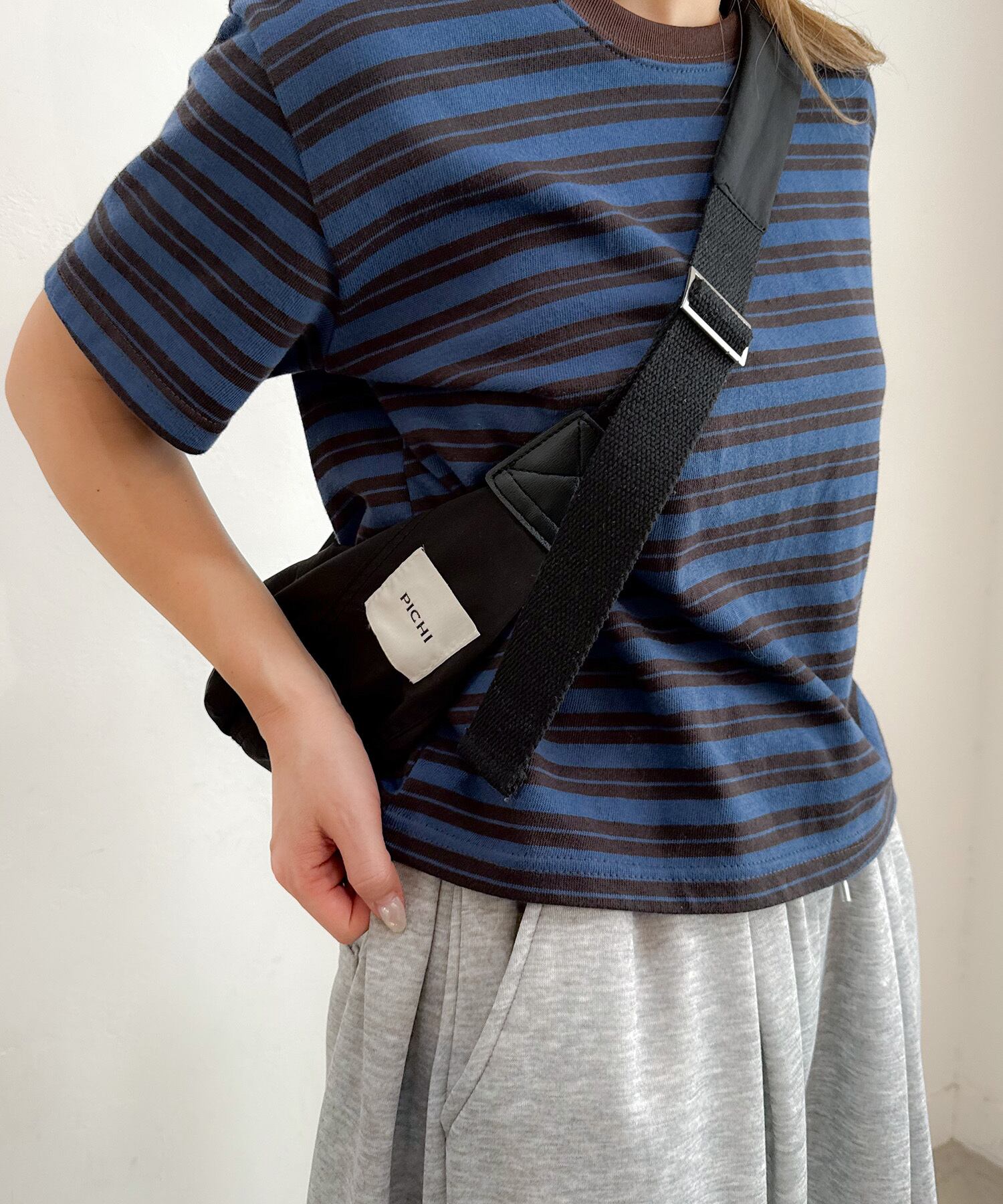 サイドのPICHIタグがさりげないポイントに。太めのショルダーは肩に優しく、長さ調節も可能。肩掛けや斜め掛けなどお好みのスタイルで使えます。コンパクトながらB5サイズまで収納可能。ファスナーが横幅いっぱい開くので、出し入れしやすく機能性も抜群。毎日手に取りたくなるデイリーに使えるバッグです。