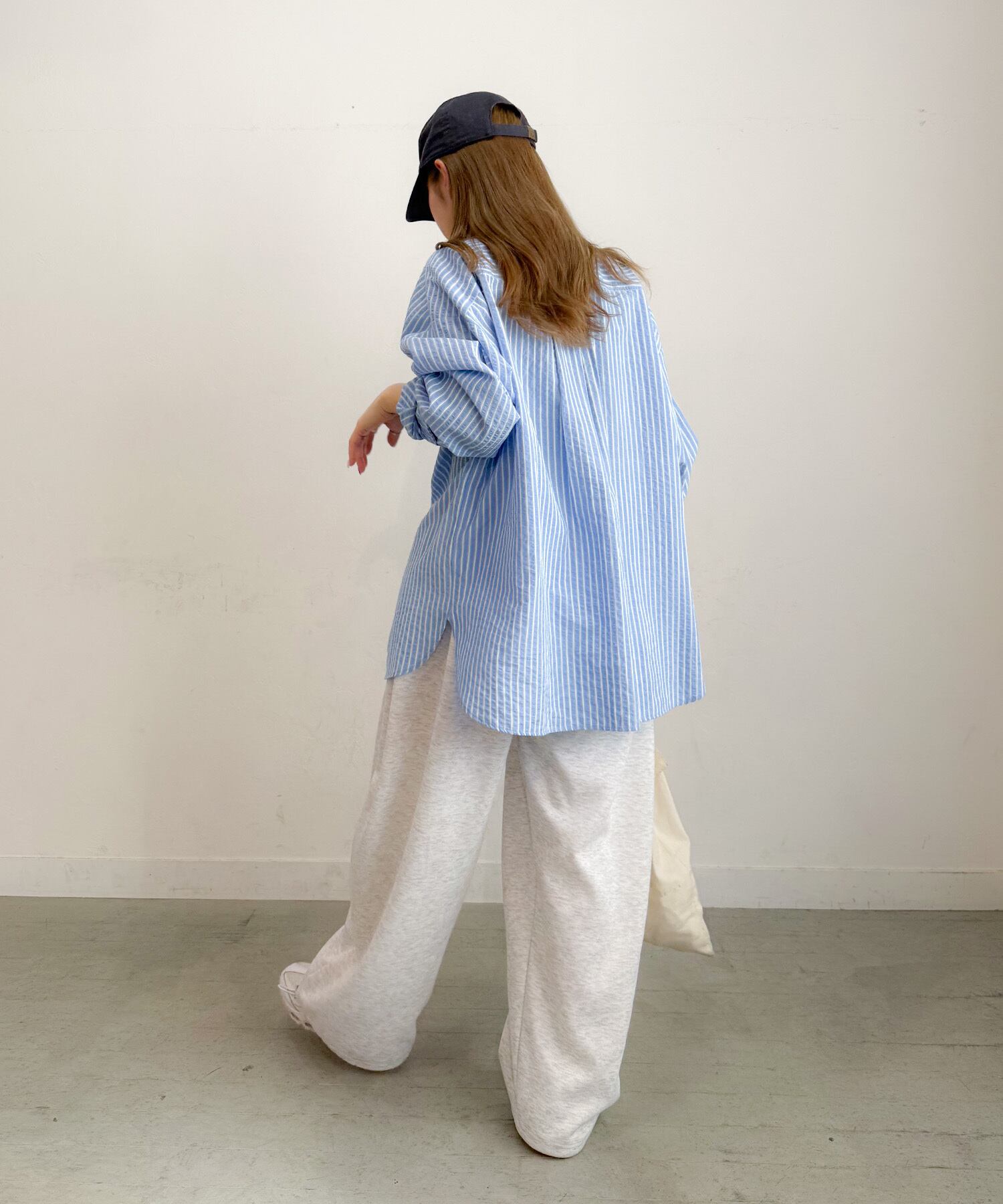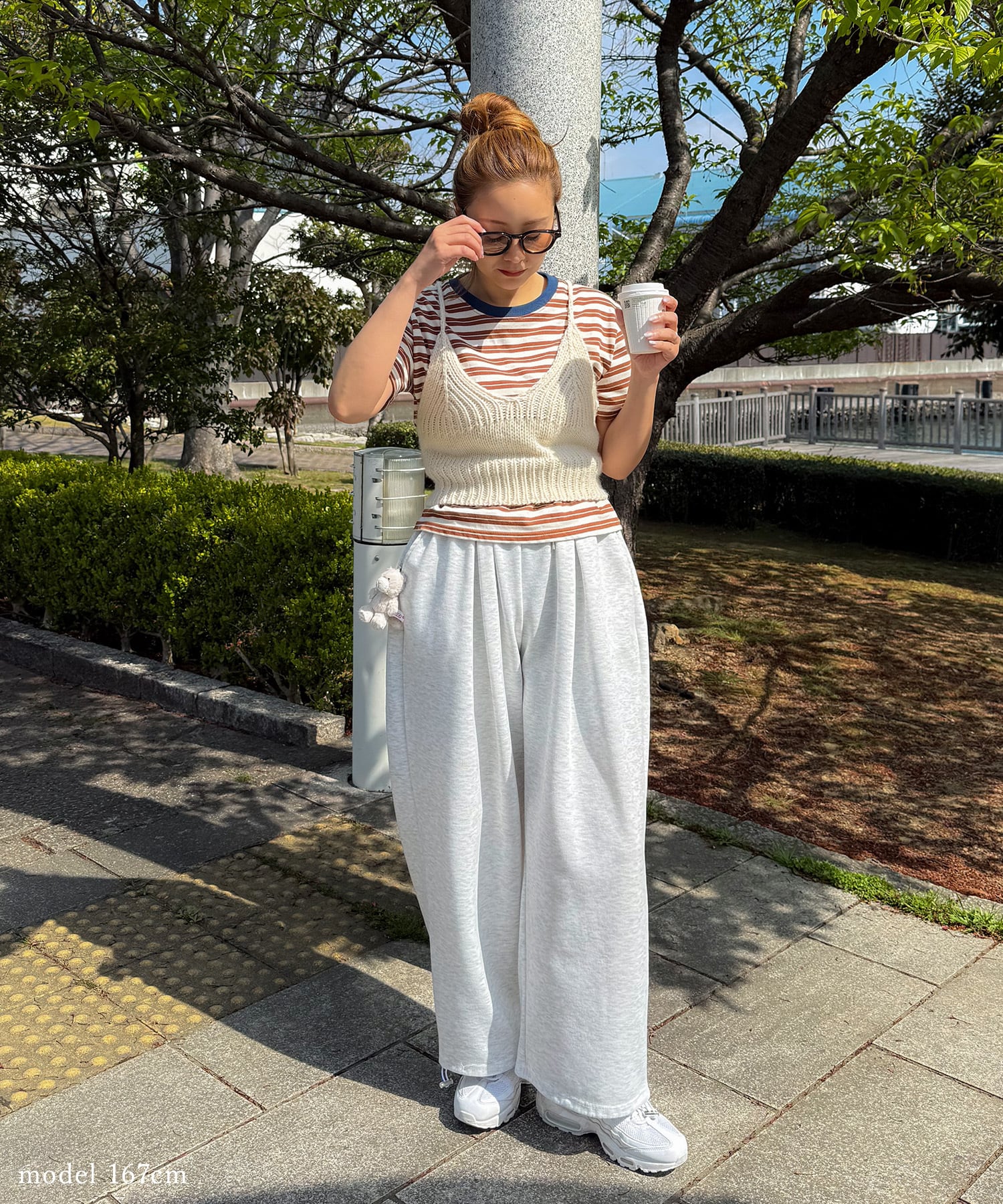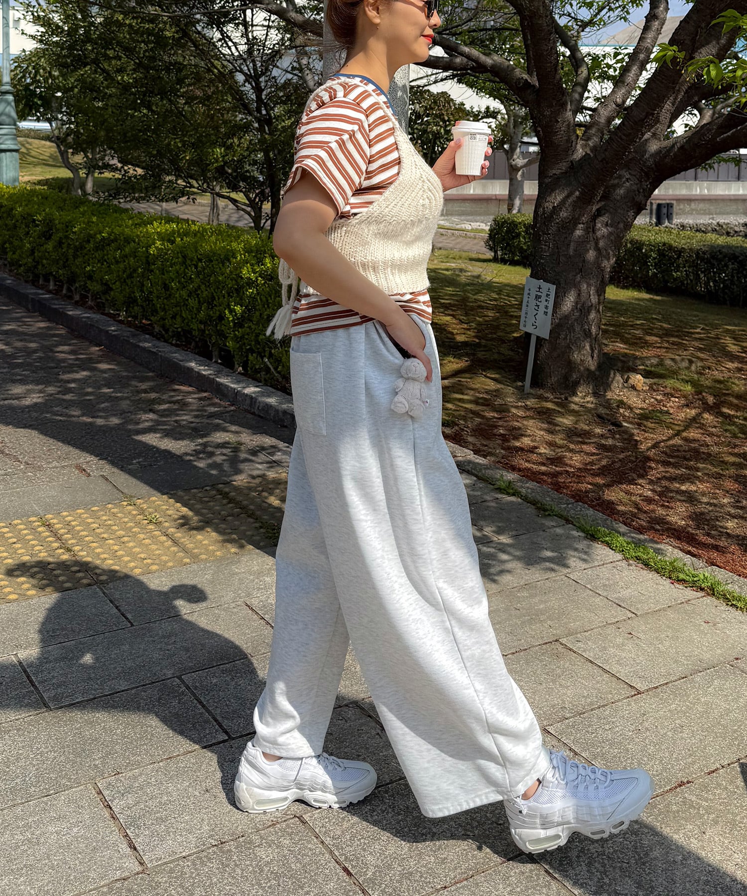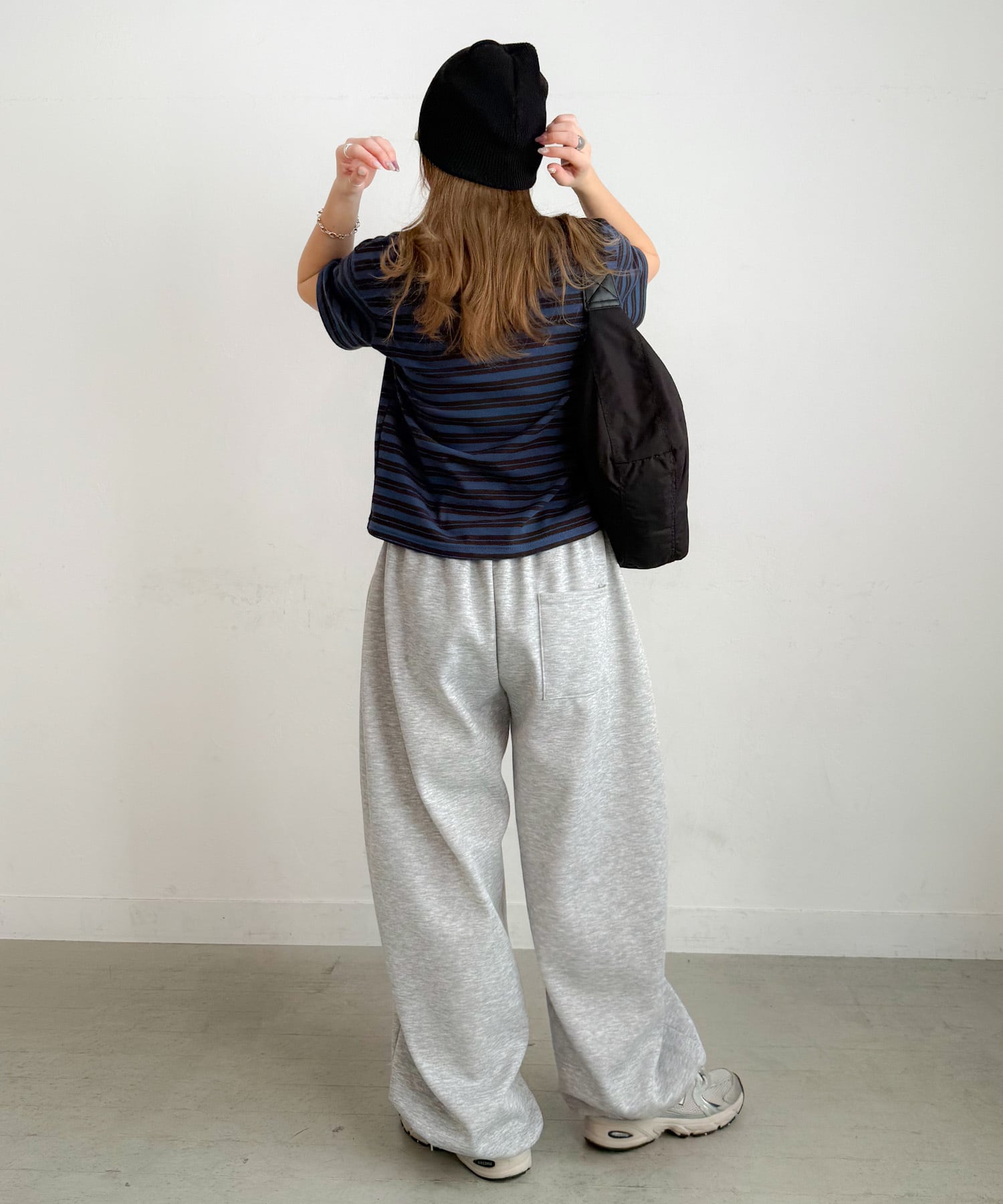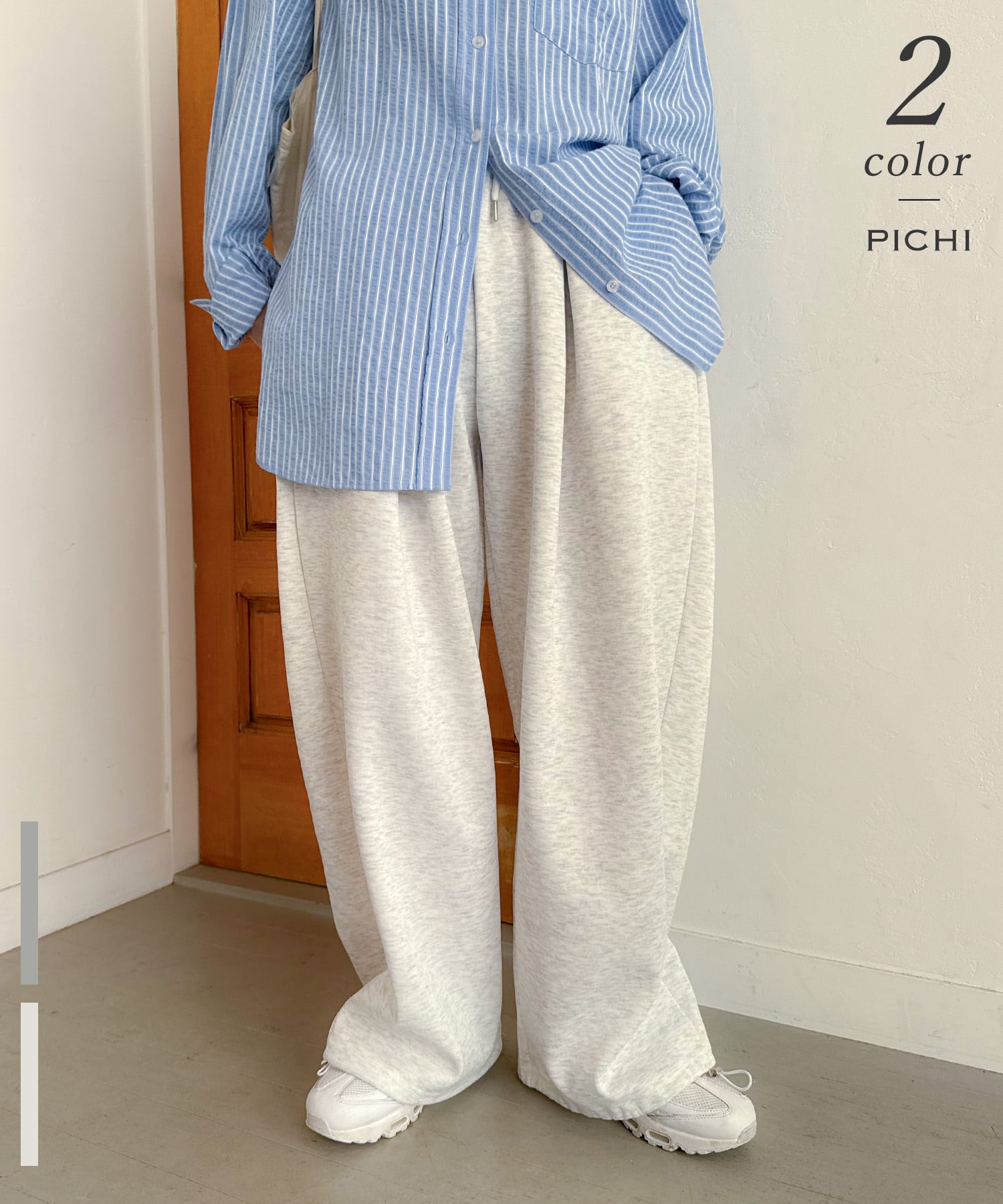 深めに入れたタックが生み出す、立体的でゆとりのあるシルエットが魅力のワイドスウェットパンツ。