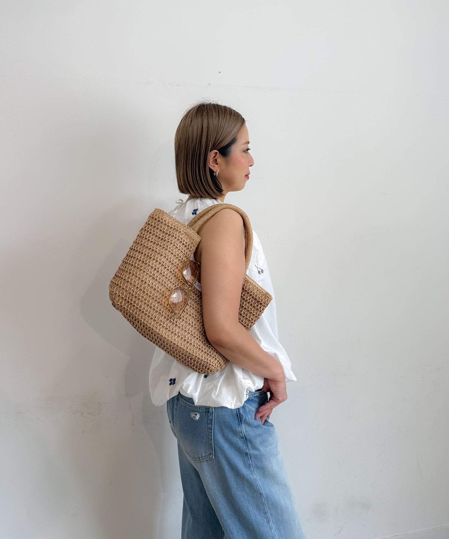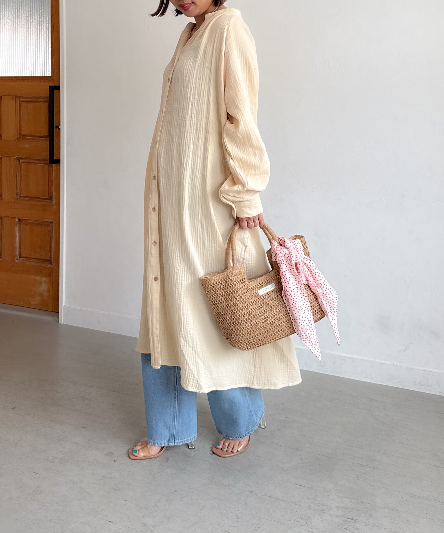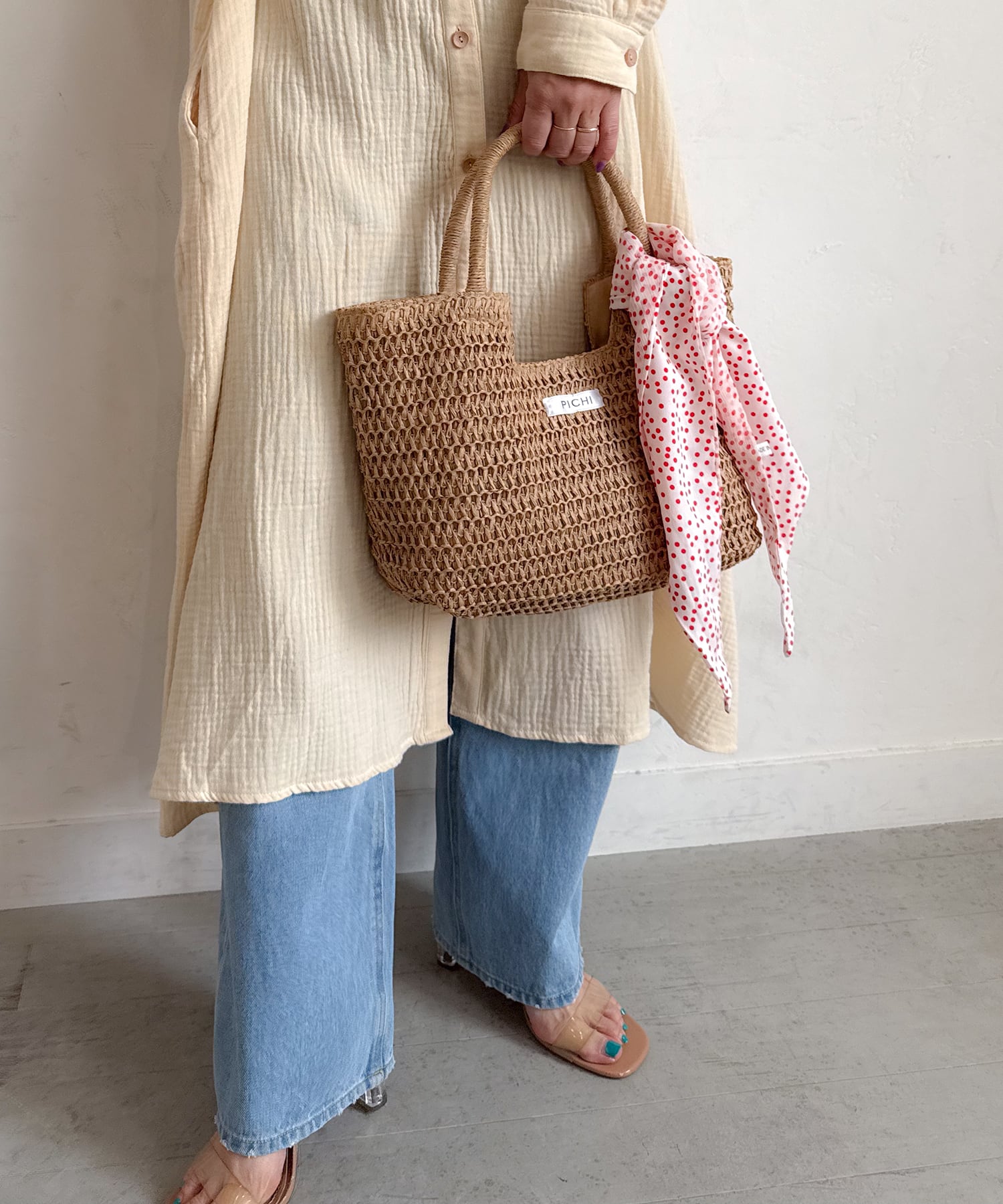 ・リネンワンピと合わせて夏を素材感で演出