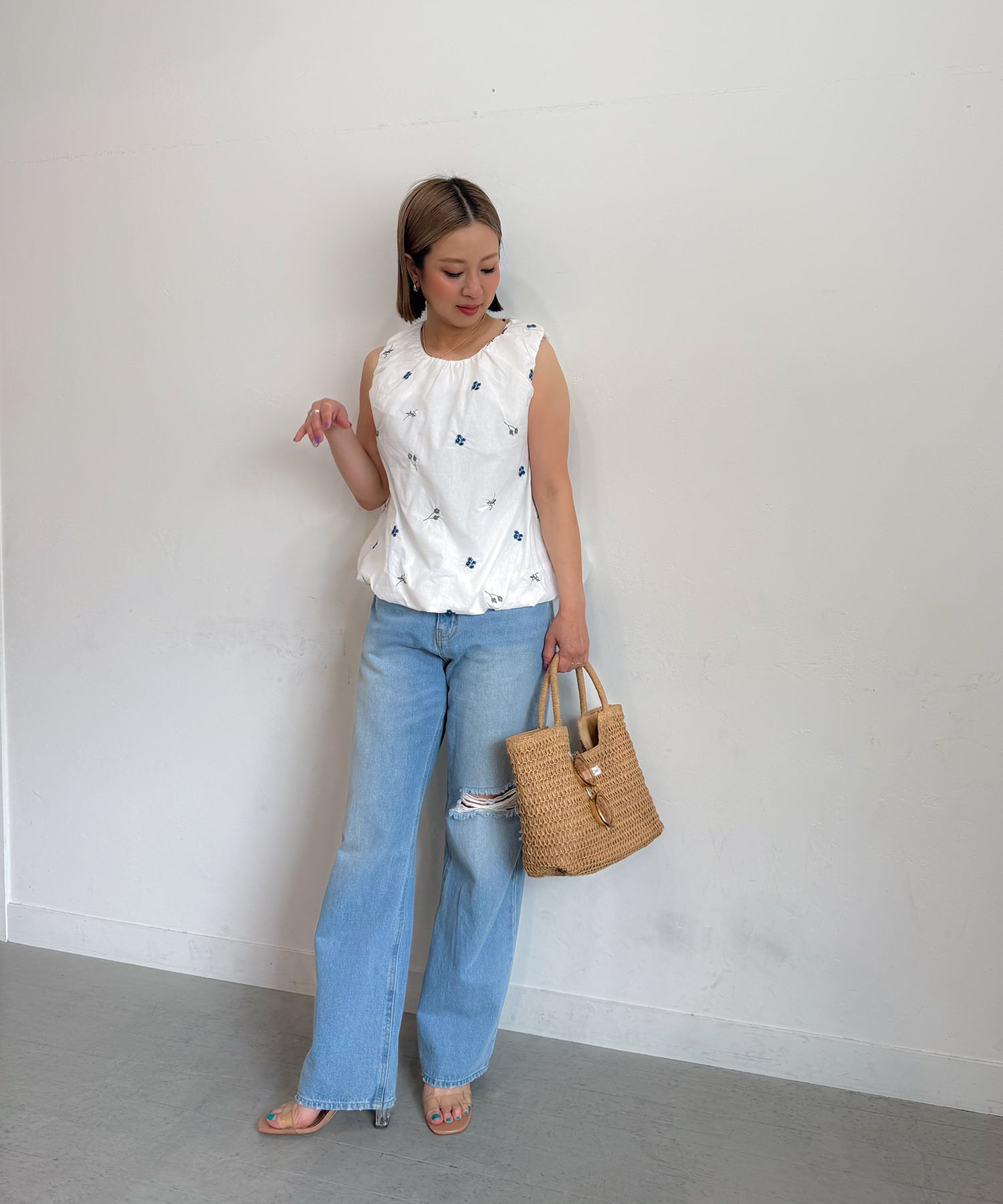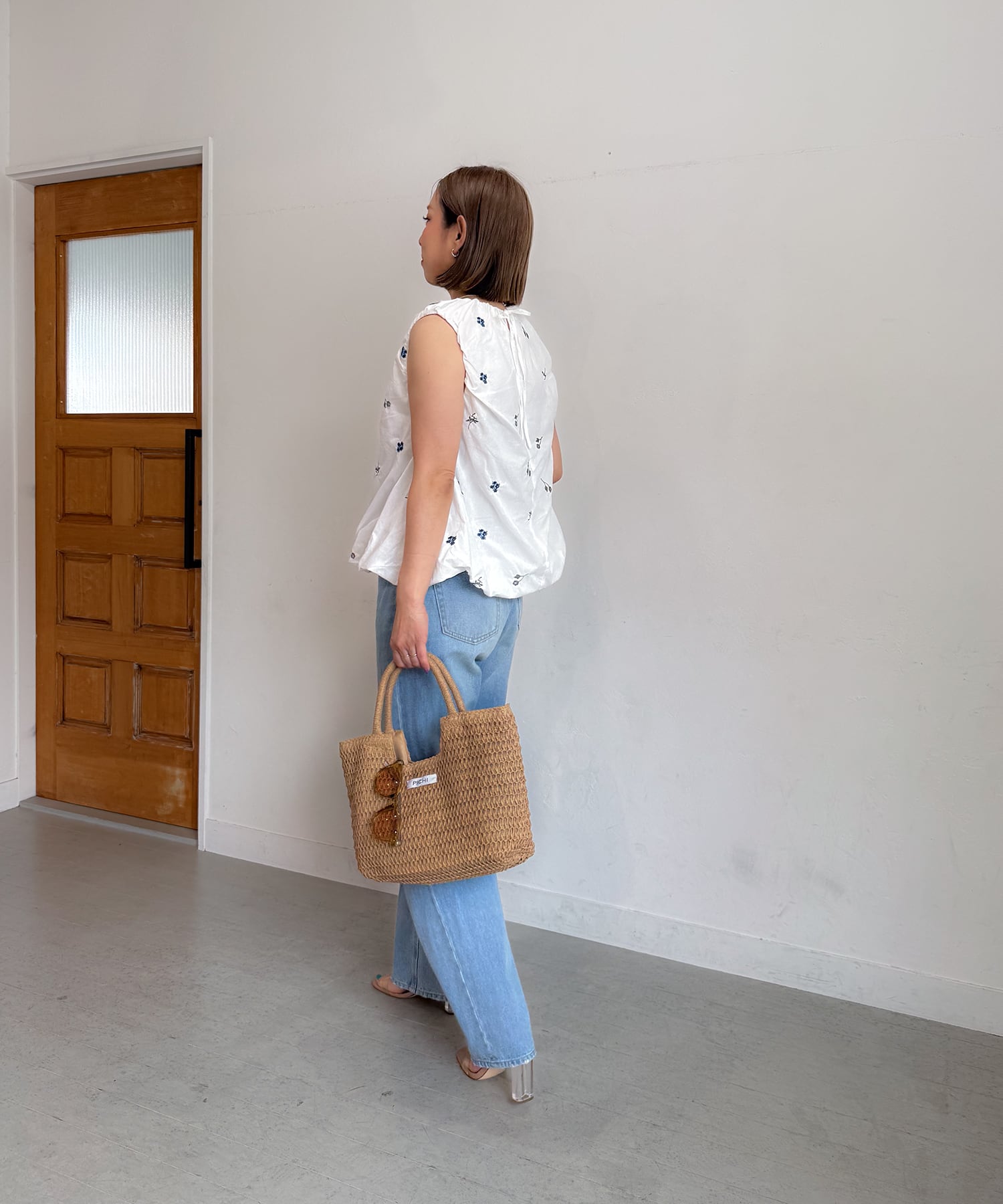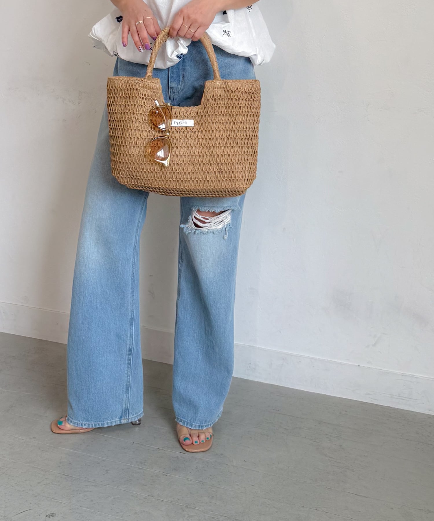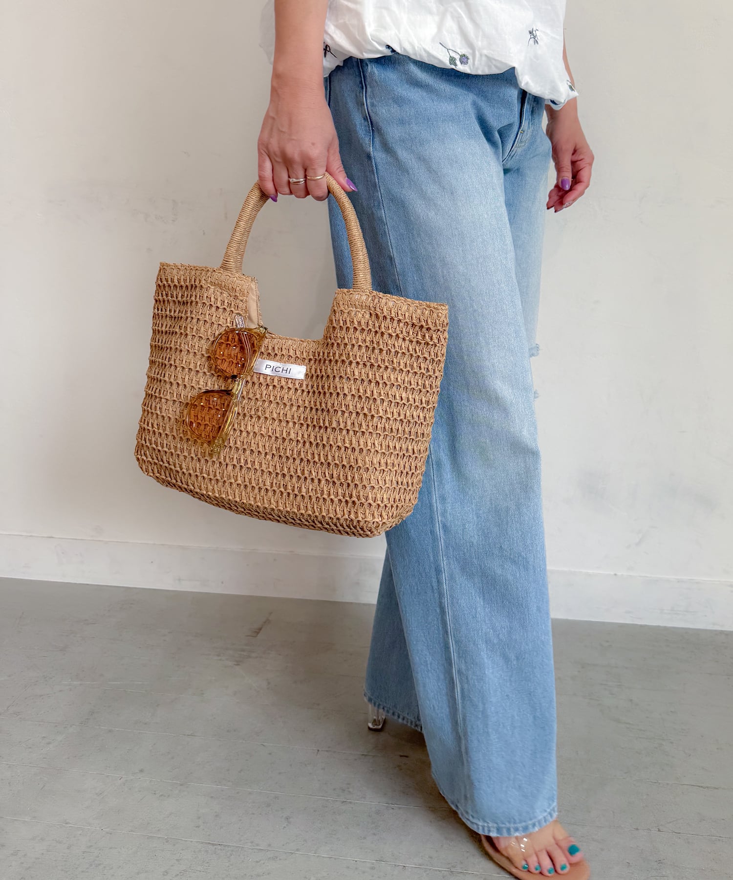 ・リネンワンピと合わせて夏を素材感で演出
