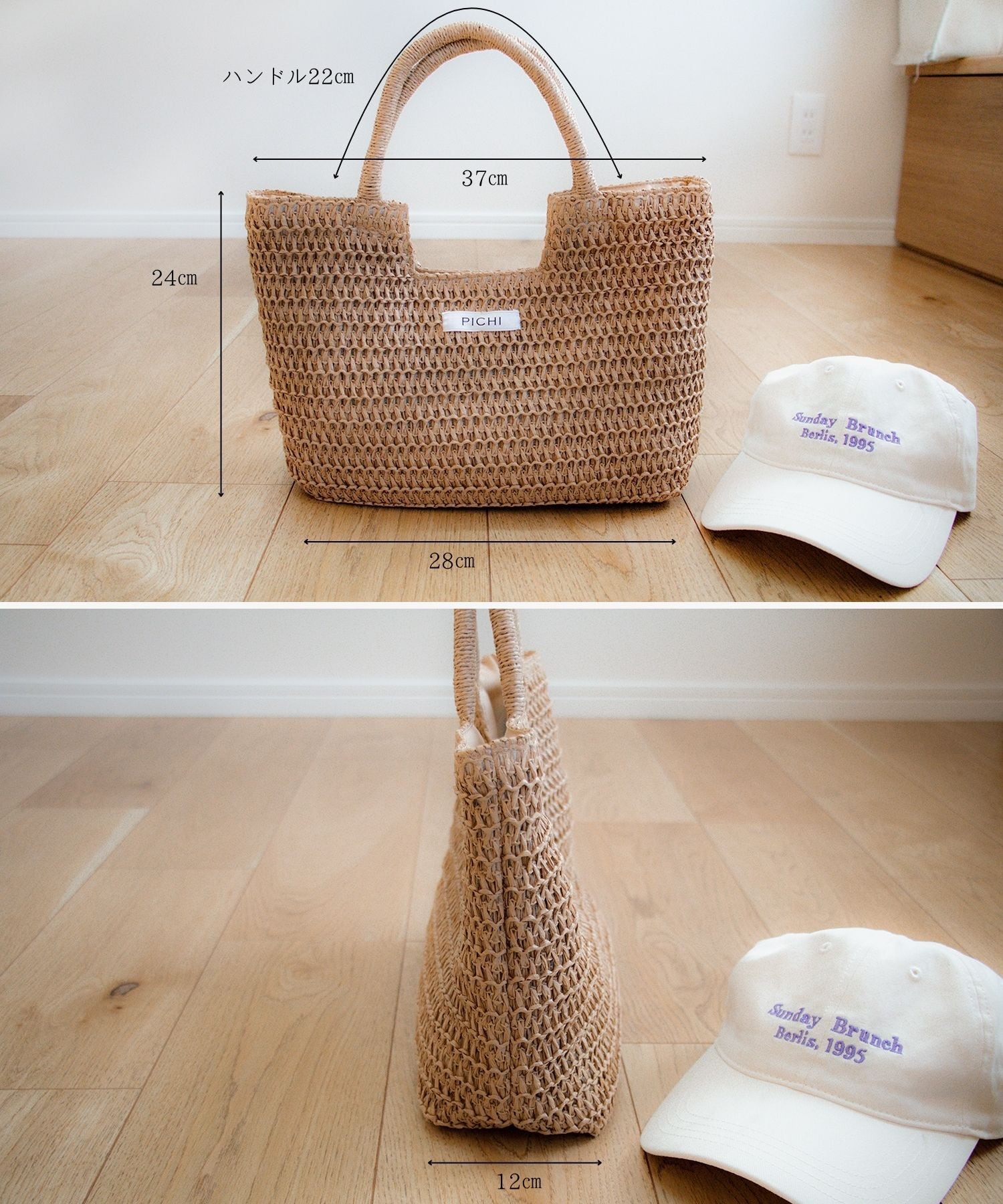 本体:縦24 横(上部)37(下部)28 マチ12 ハンドル長さ22