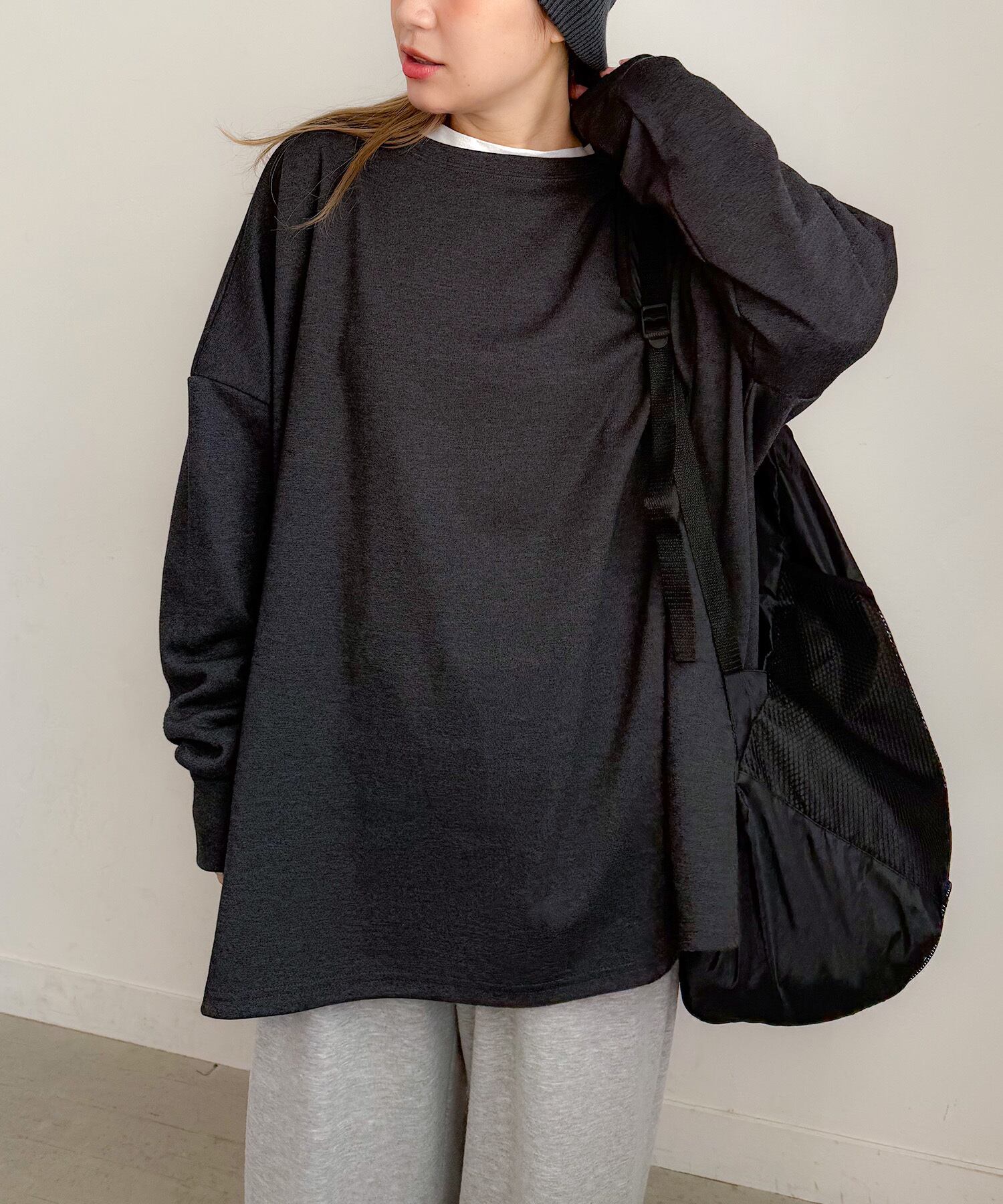 ドロップショルダーでルーズなサイジングのオーバーサイズロンTee
