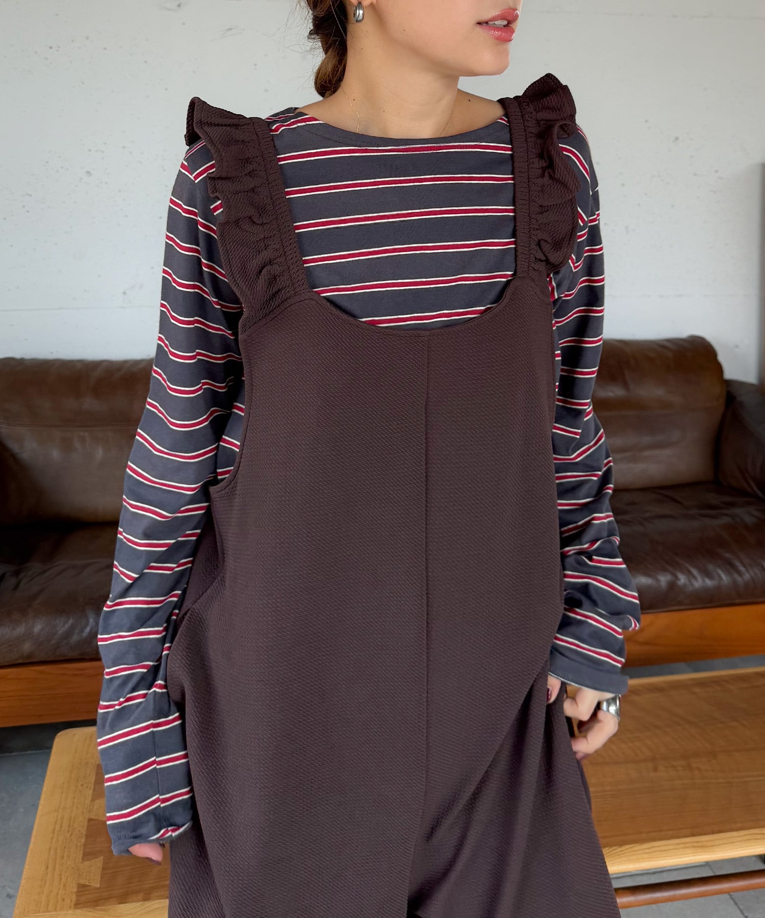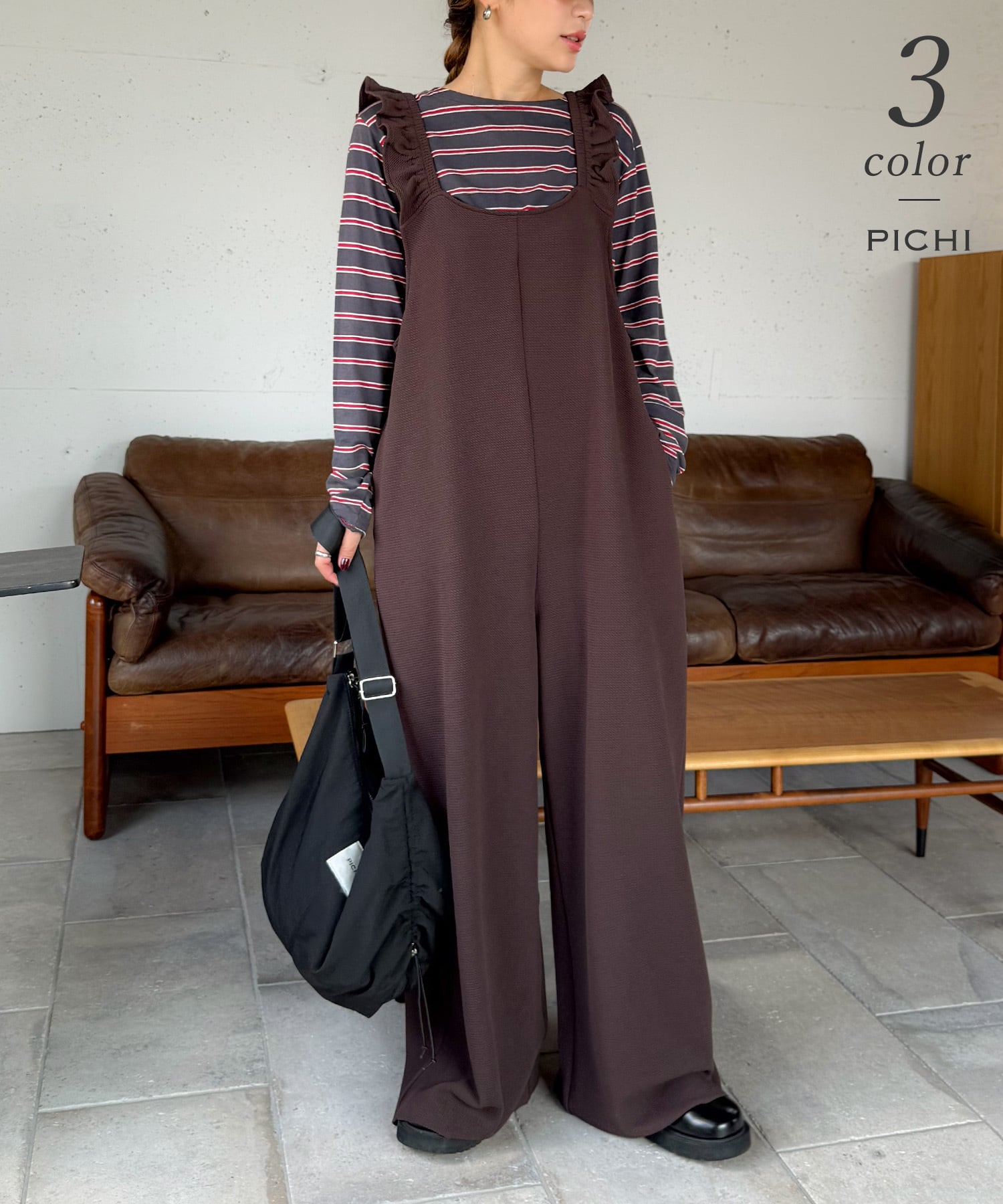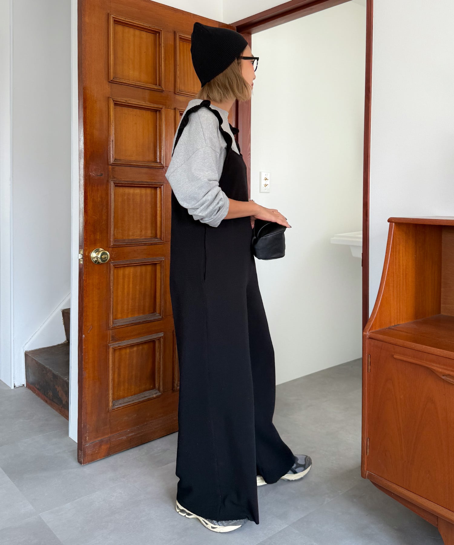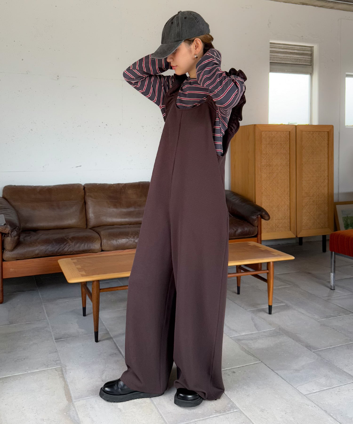 すとんと落ちるシルエットの大人見えオールインワン。