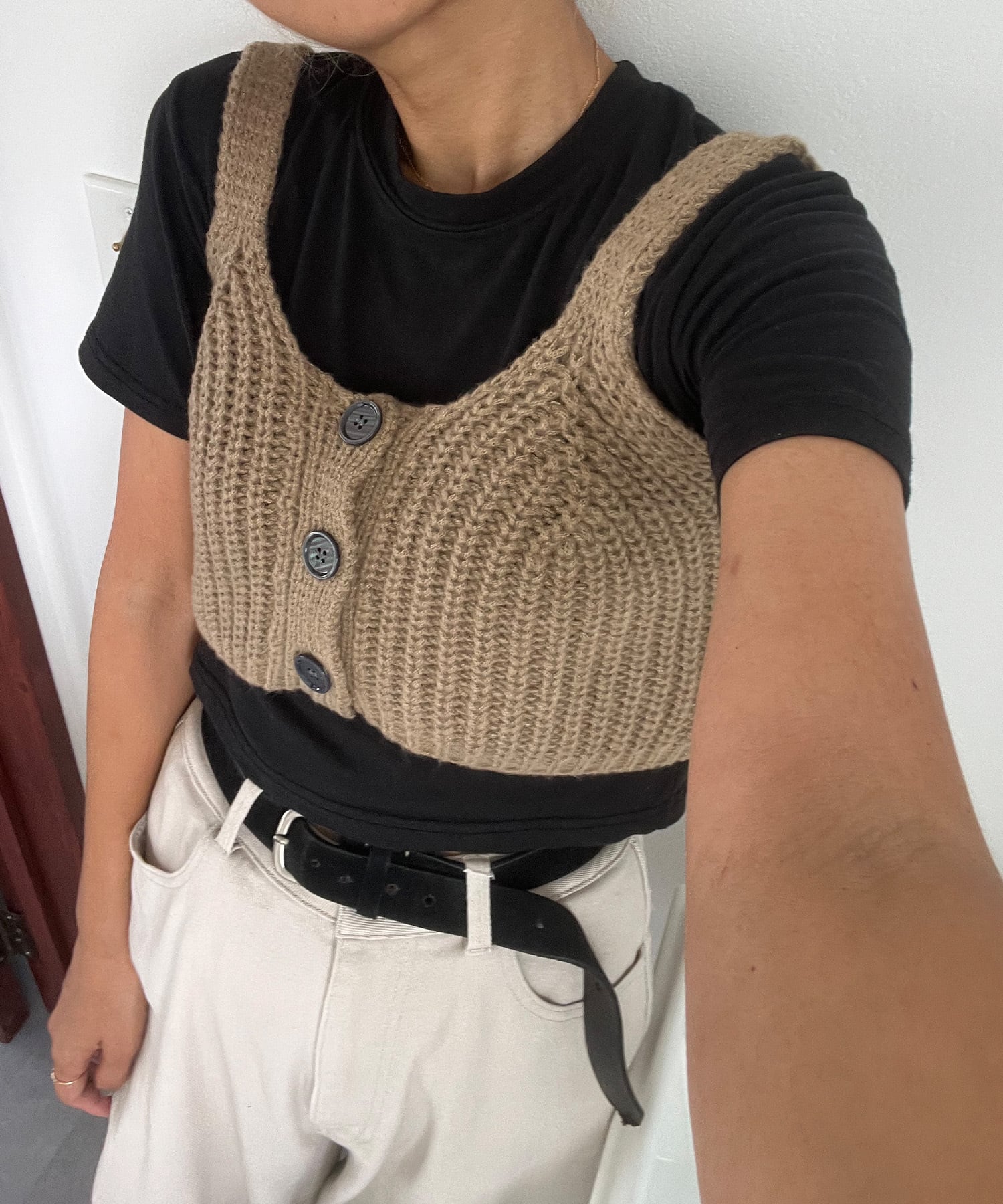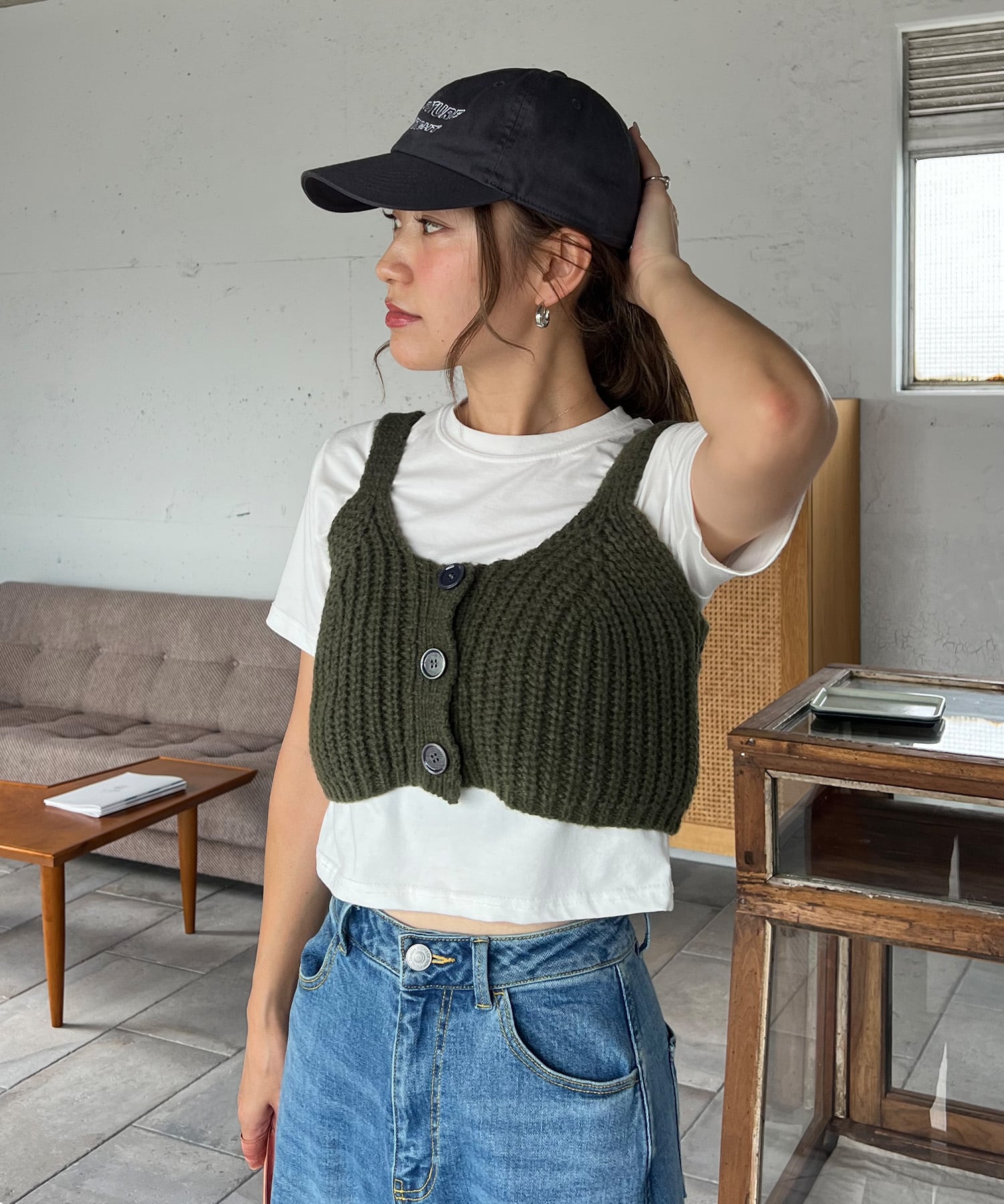 晩夏~秋冬かけて活躍するニットビスチェ。