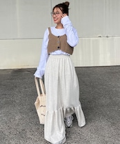 ブラウスやカットソーなどにプラスするだけでトレンドライクなスタイリングが完成します。