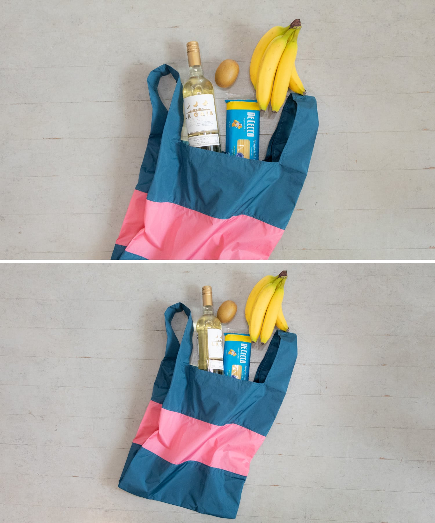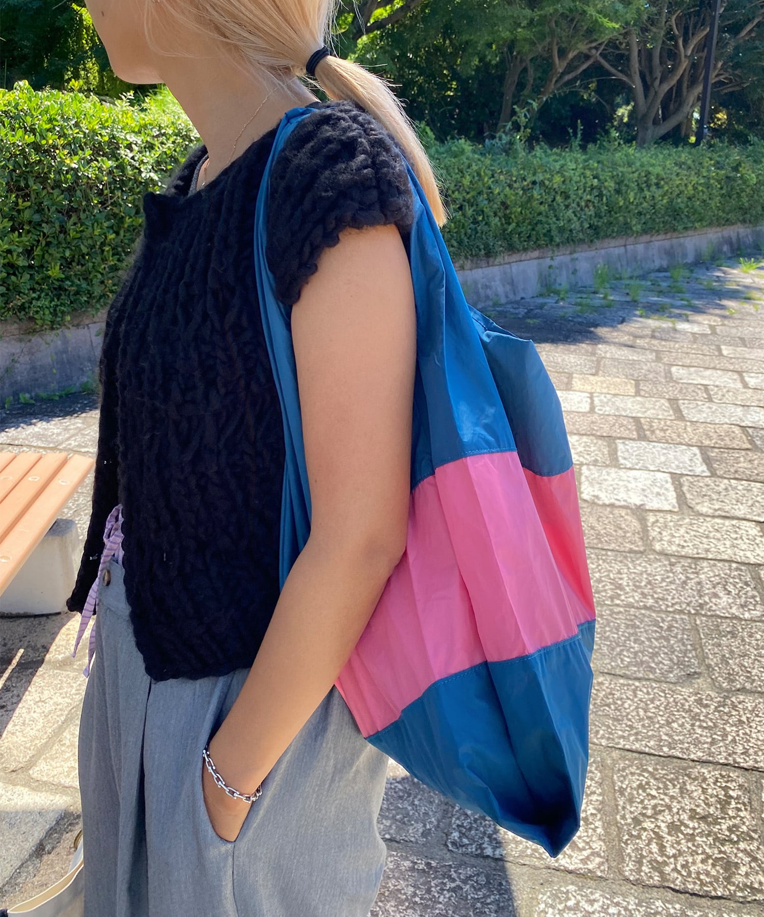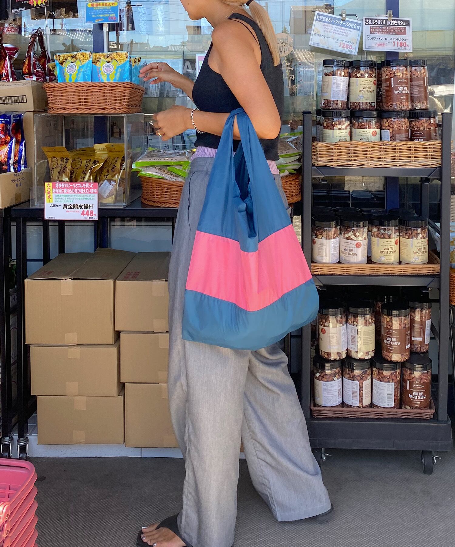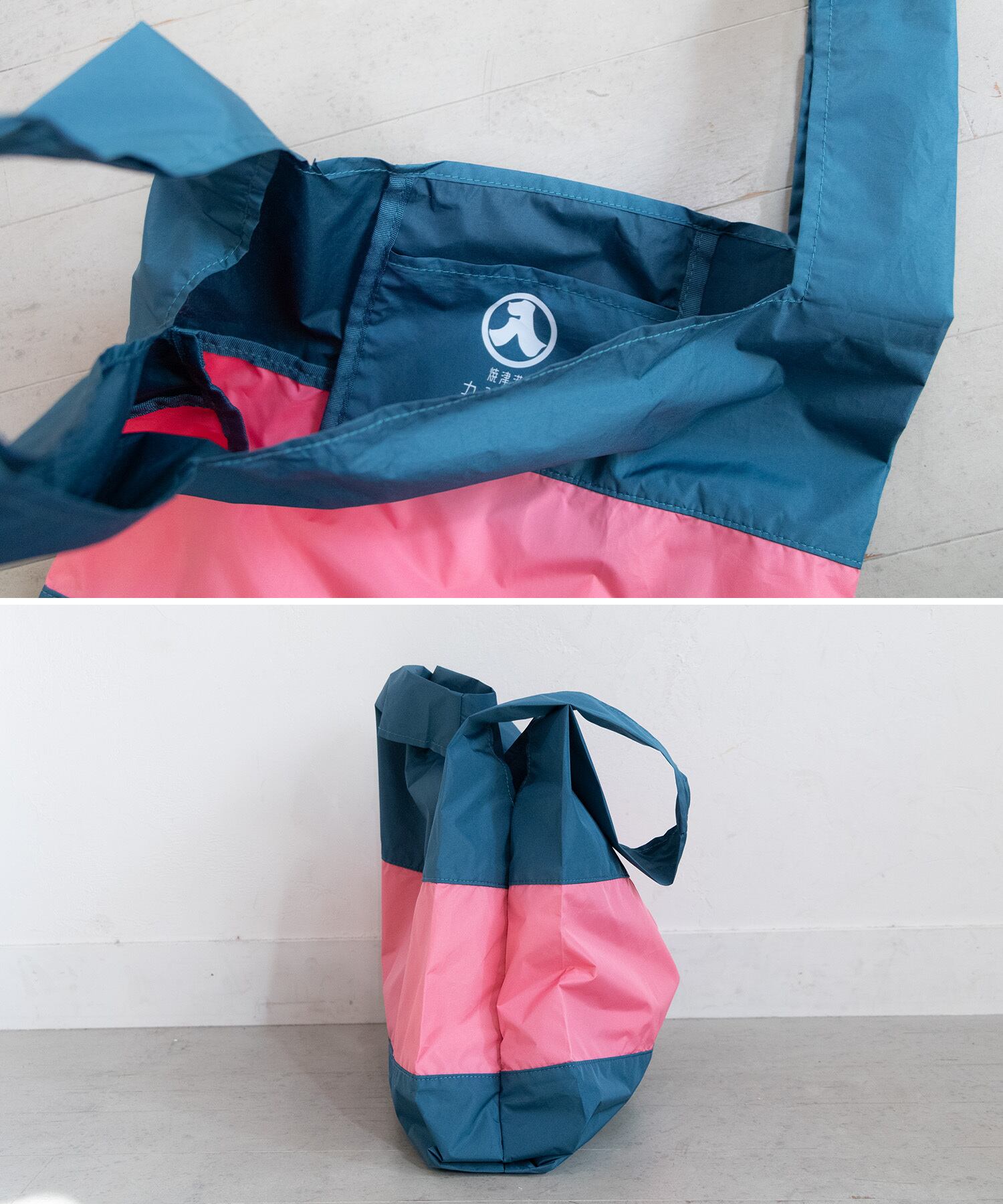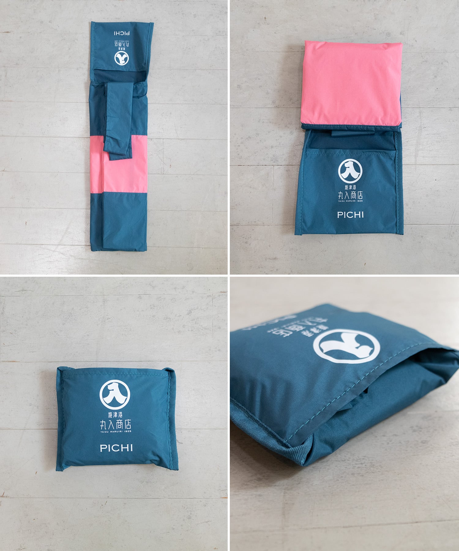 丸入商店のブランドカラーと、鮪の柵をイメージしたツートンカラーがポイント。お買い物に便利なサイズ感で、広げれば13センチのマチができ、スーパーやコンビニで買ったお惣菜やお弁当などもすっぽりと入れやすいのも嬉しいポイント。持ち手部分は幅が広いデザインなので、少し多めのお買い物をした日も手が痛くなりにくい設計です。
