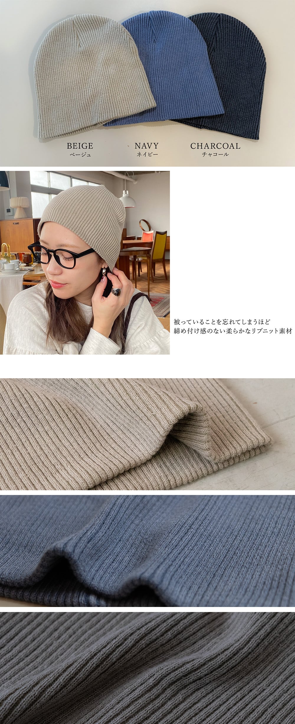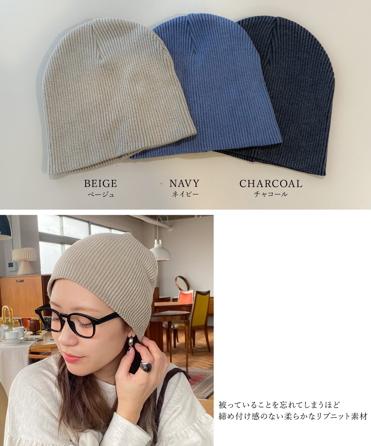 ベーシックなリブ編みがスタイリングを選ばず楽しめる、定番のニットビーニー。